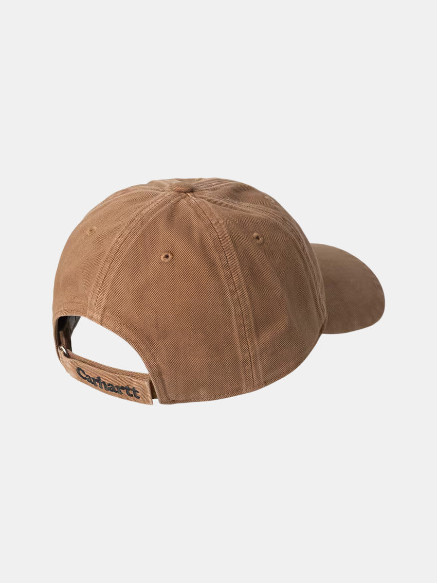Klassisk six-panel cap lavet i kraftig bomuldstwill fra Carhartt. Den har foring i frontpanelet og en fast, buet skygge.