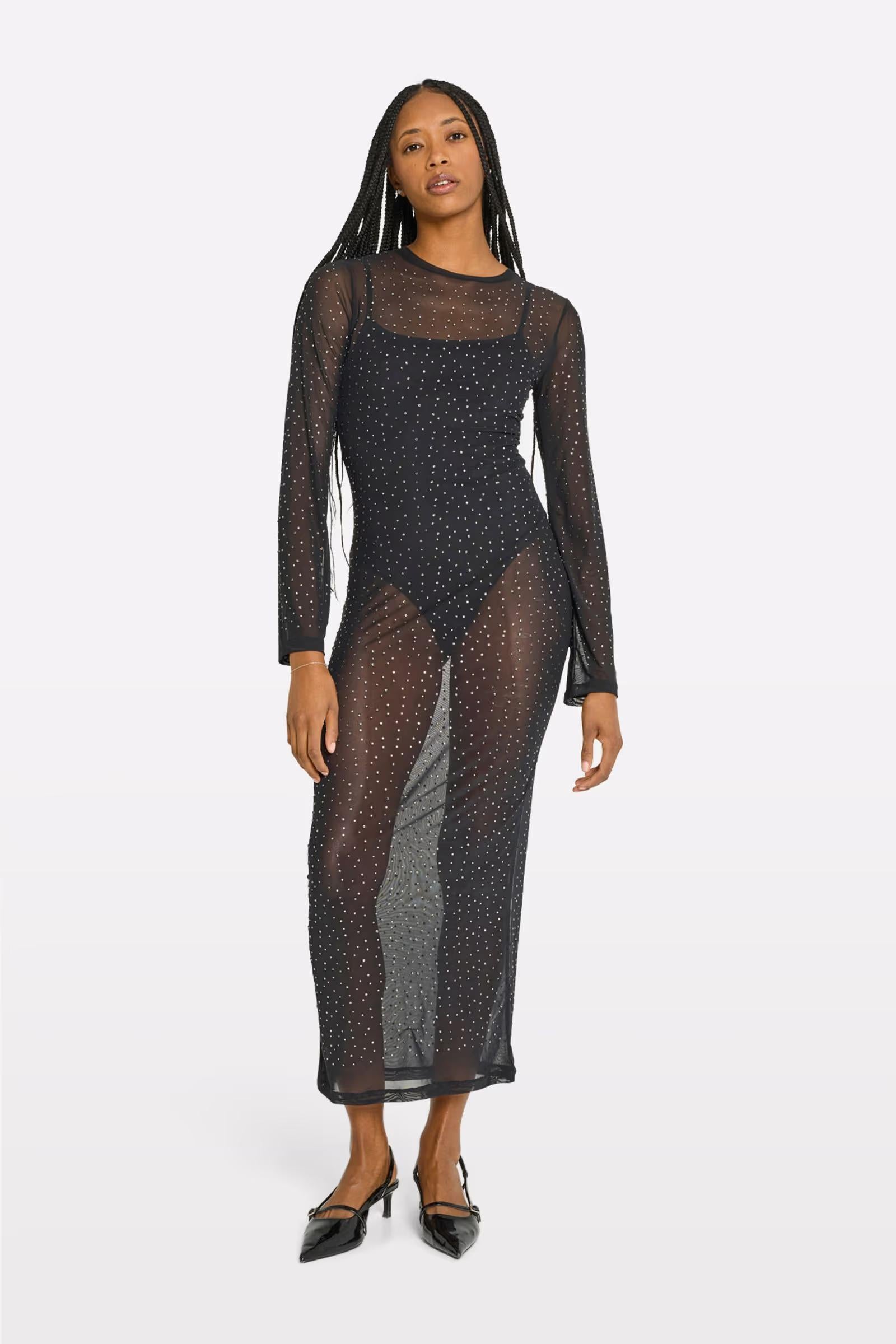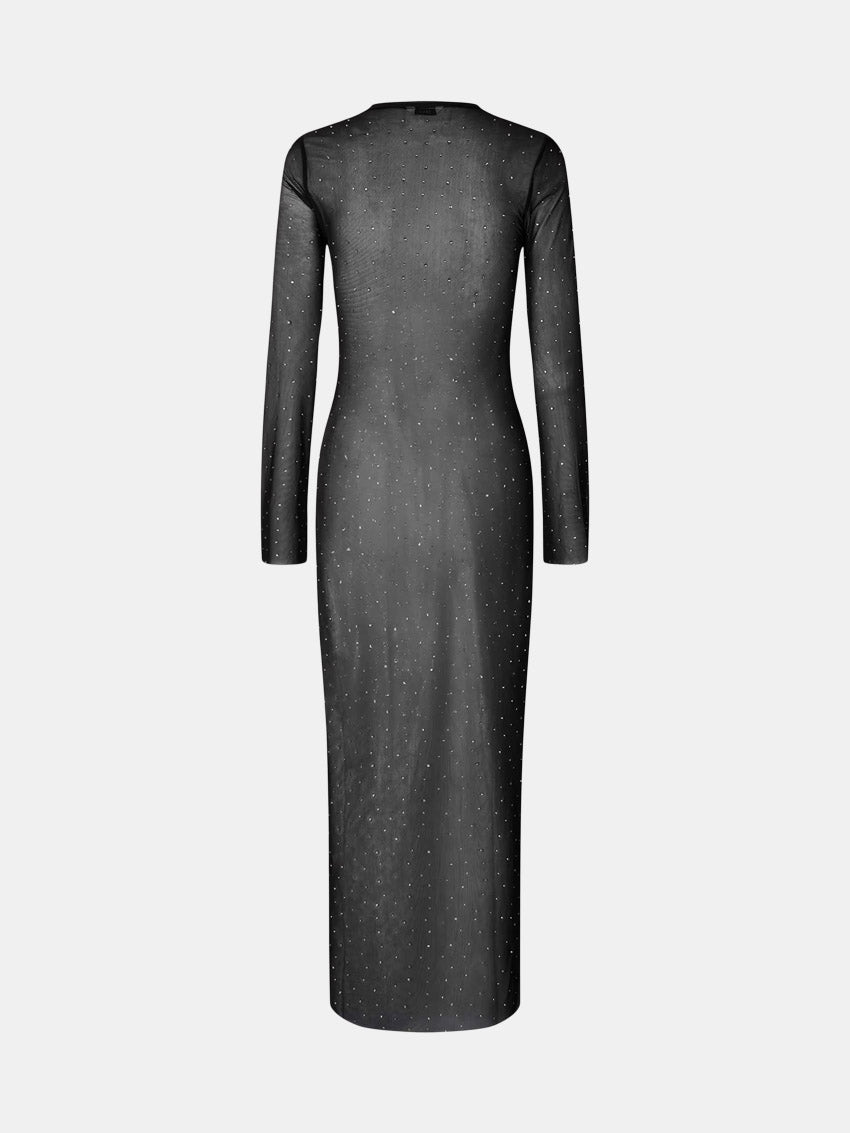 Lang sort mesh kjole med rhinsten fra Envii