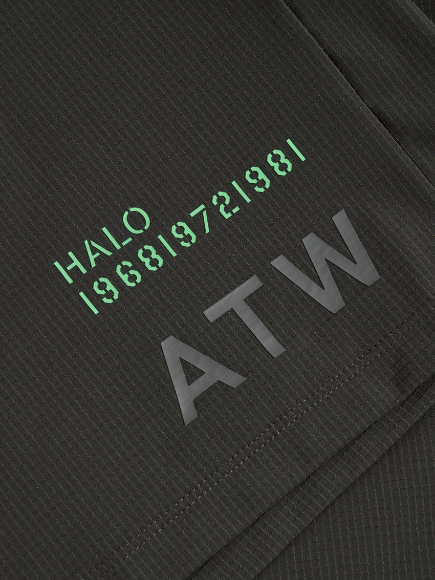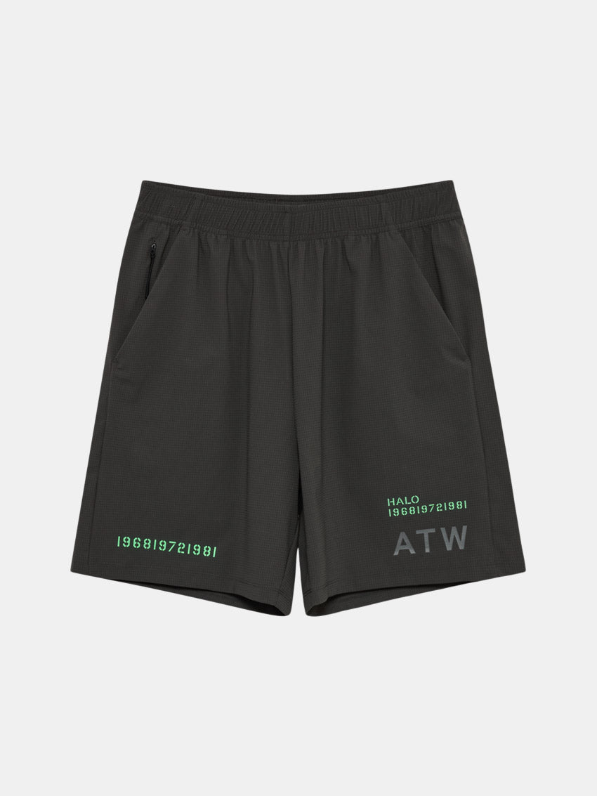 Sorte unisex shorts med grønne detaljer i stretchvævet materiale med elastisk linning, lommer og åndbart meshfor fra HALO.