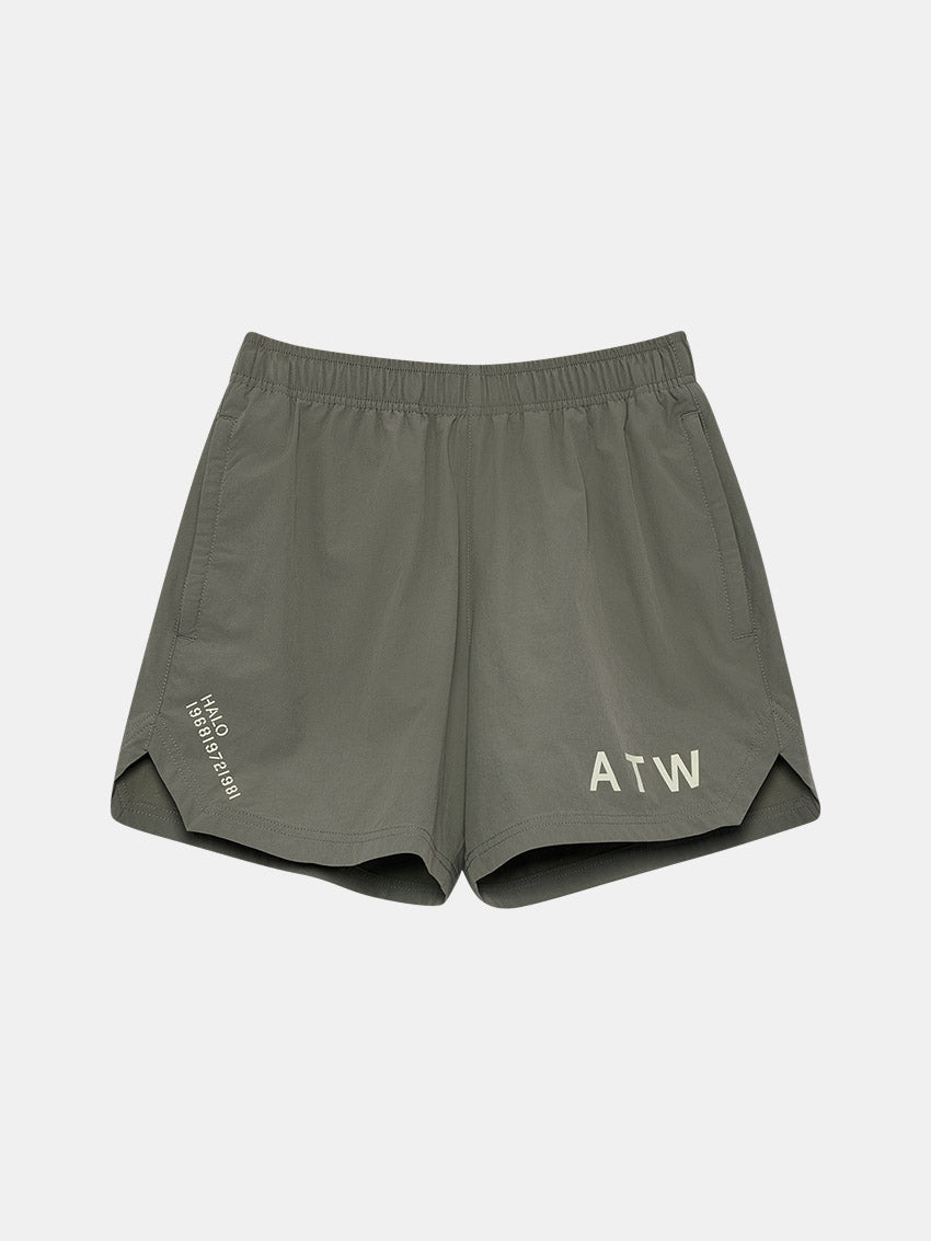 Grå unisex shorts i stretchvævet materiale med elastik/snøre, lynlåslommer og åndbart meshfor fra HALO.