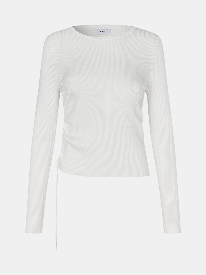 Langærmet sweater i ribstrik med slank pasform fra Envii. Modellen har rund hals samt rene afslutninger ved manchetter og forneden. Den justerbare rynkning i siden med snøre gør det muligt at tilpasse silhuetten og skabe et personligt look.