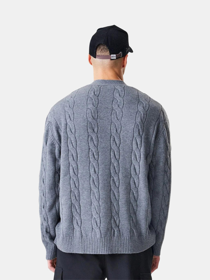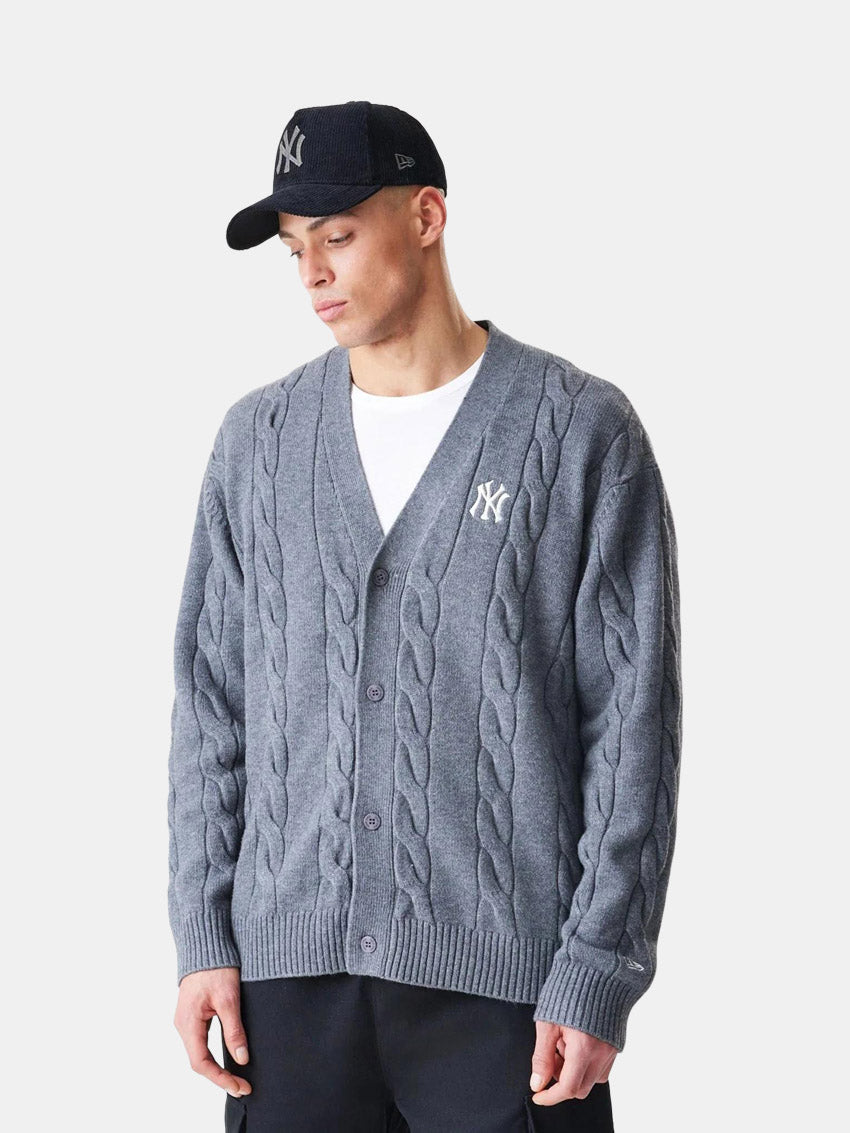 Kabelstrikket cardigan i mørkegrå med ikonisk New York Yankees-logo broderet på brystet fra New Era.