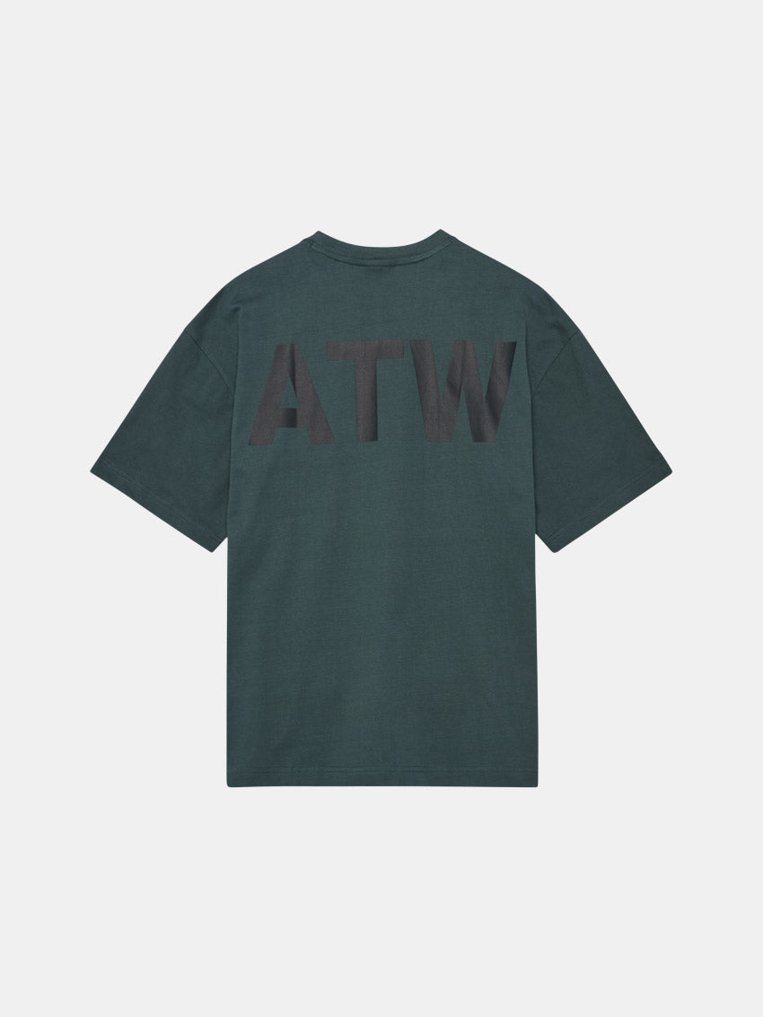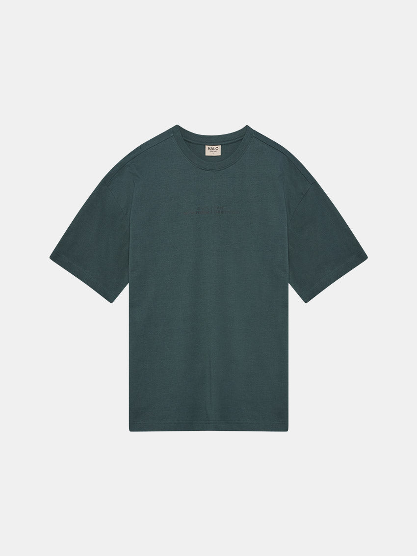 Grøn boxy t-shirt i økologisk bomuld med logo over brystet og på ryggen fra HALO.