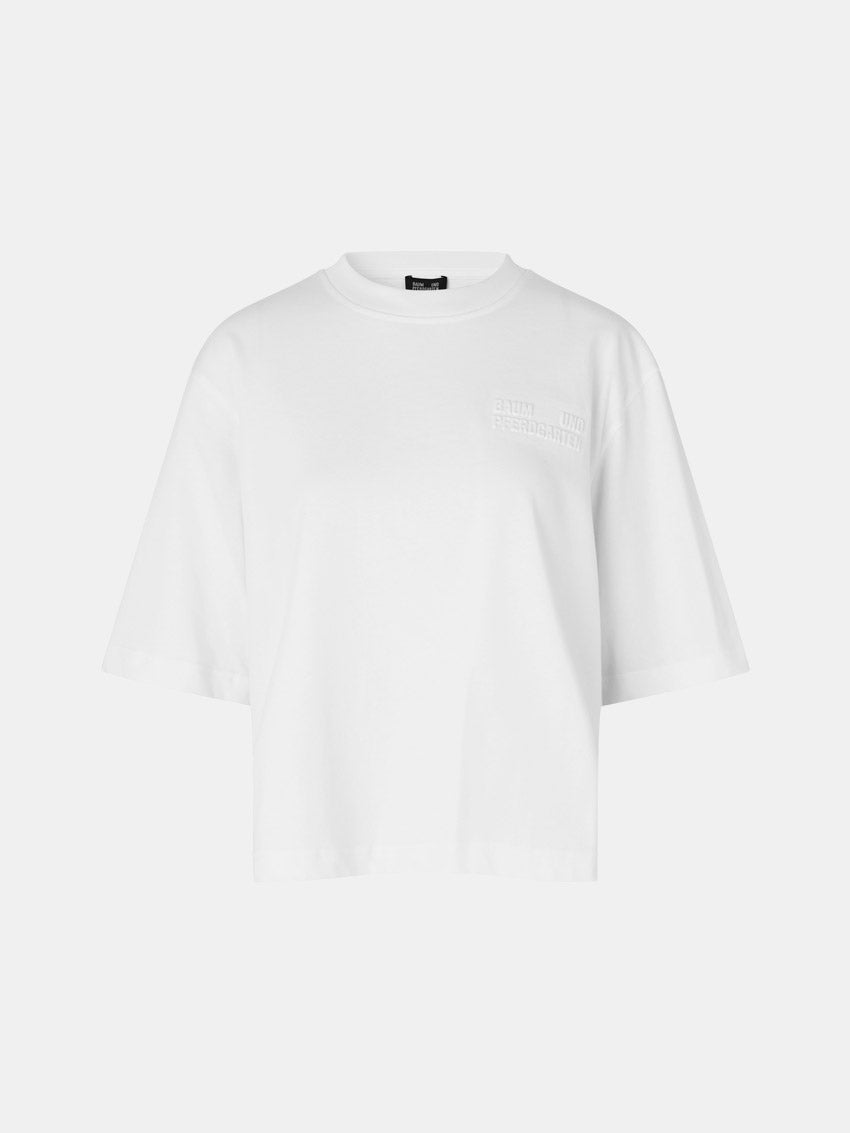 Tidløs t-shirt i tung, økologisk bomuld med løs pasform, rund hals og lavtsiddende skuldre fra Baum und Pferdgarten.