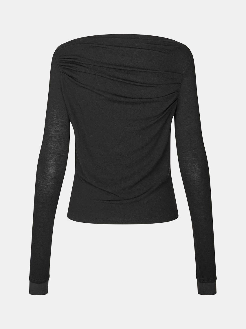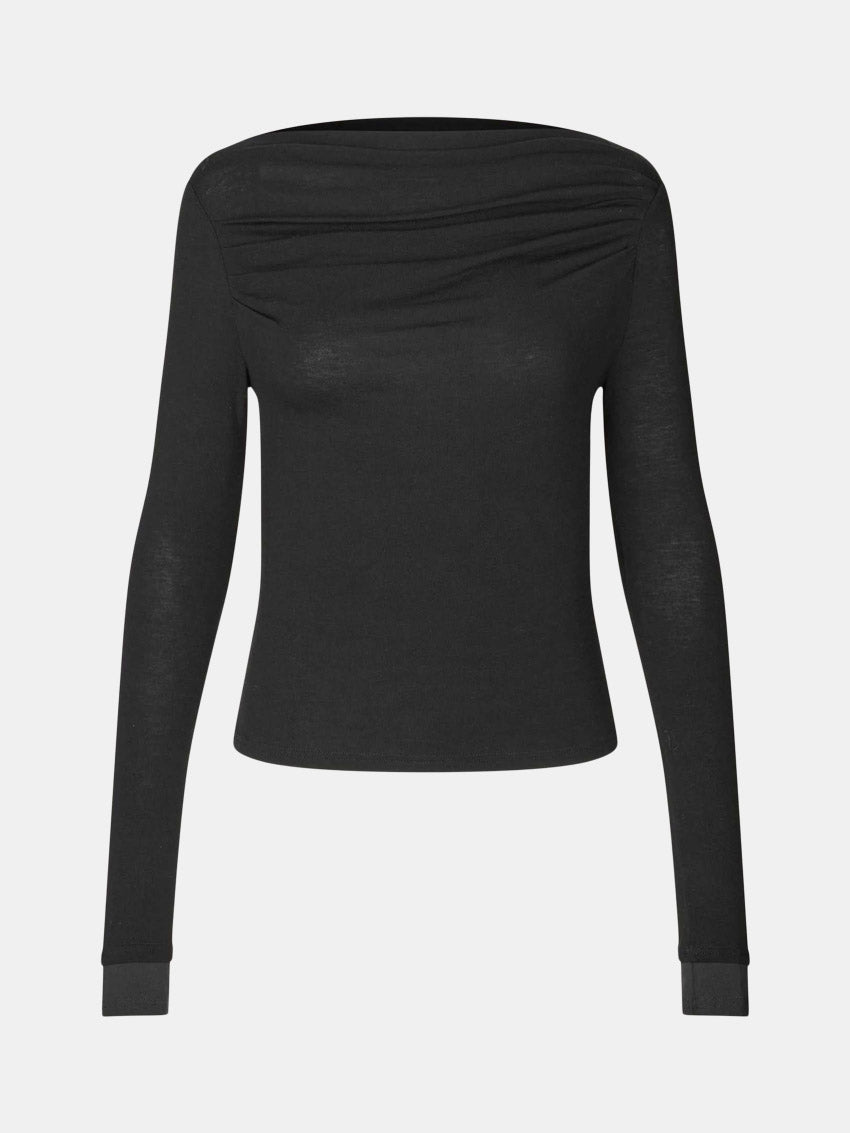 Tætsiddende bluse af en blød lyocell- og merinouldsjersey med mørkebrun kant ved ærmerne fra Oval Square.