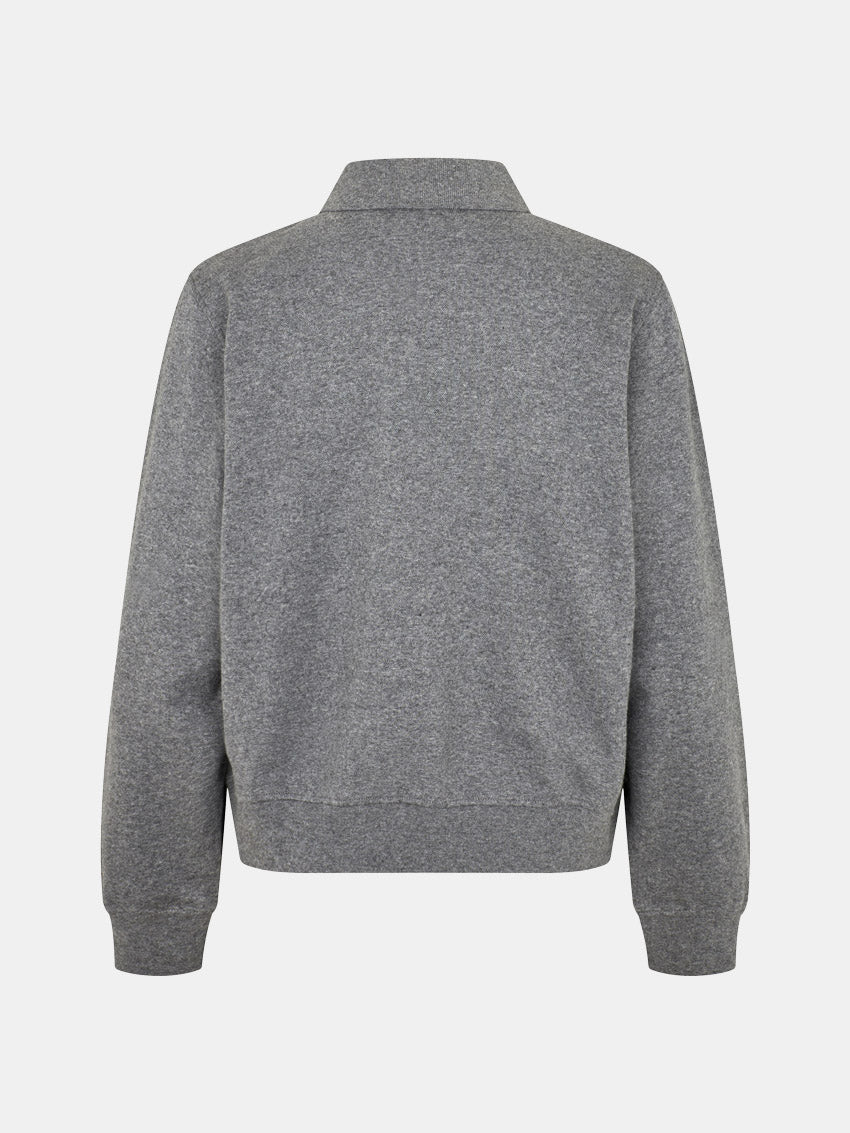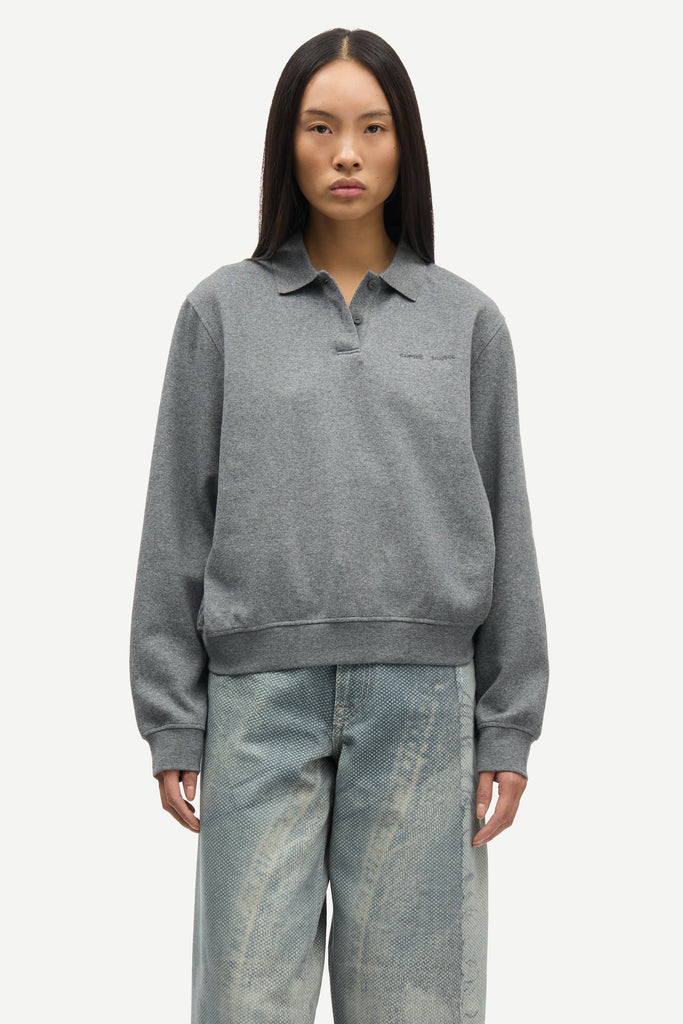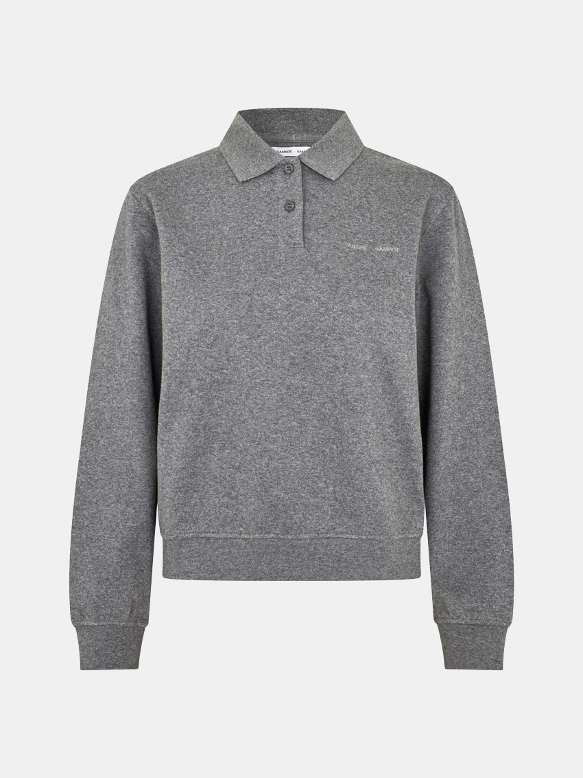 Lysegrå polo i økologisk bomuld med broderet logo på brystet fra Samsøe Samsøe.