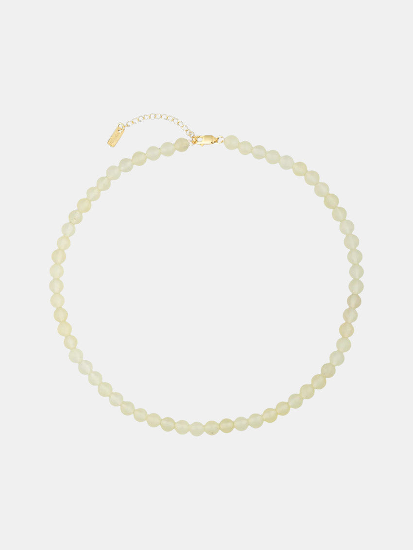 Fin halskæde med små gule perler i glas, inspireret af det farvestrålende havglas fra Vincent.
