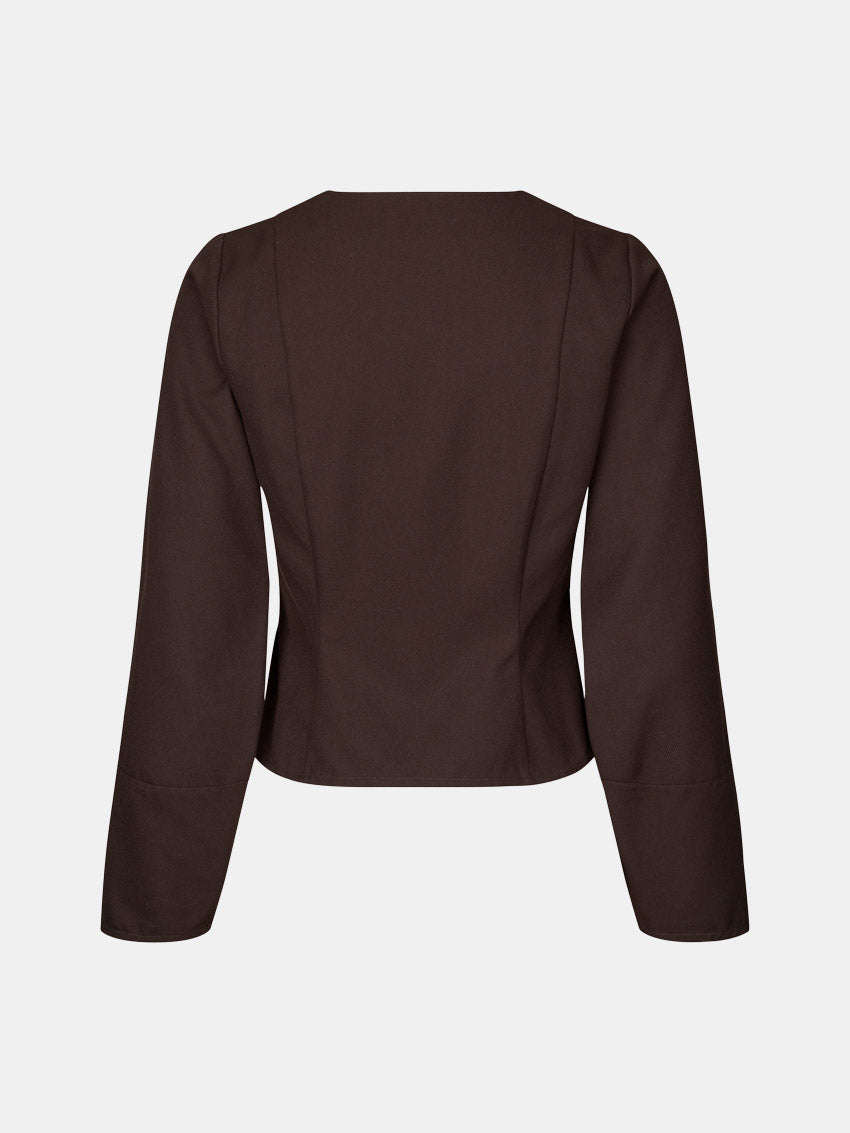 Mørkebrun bluse med en let tætsiddende silhuet fra Envii.