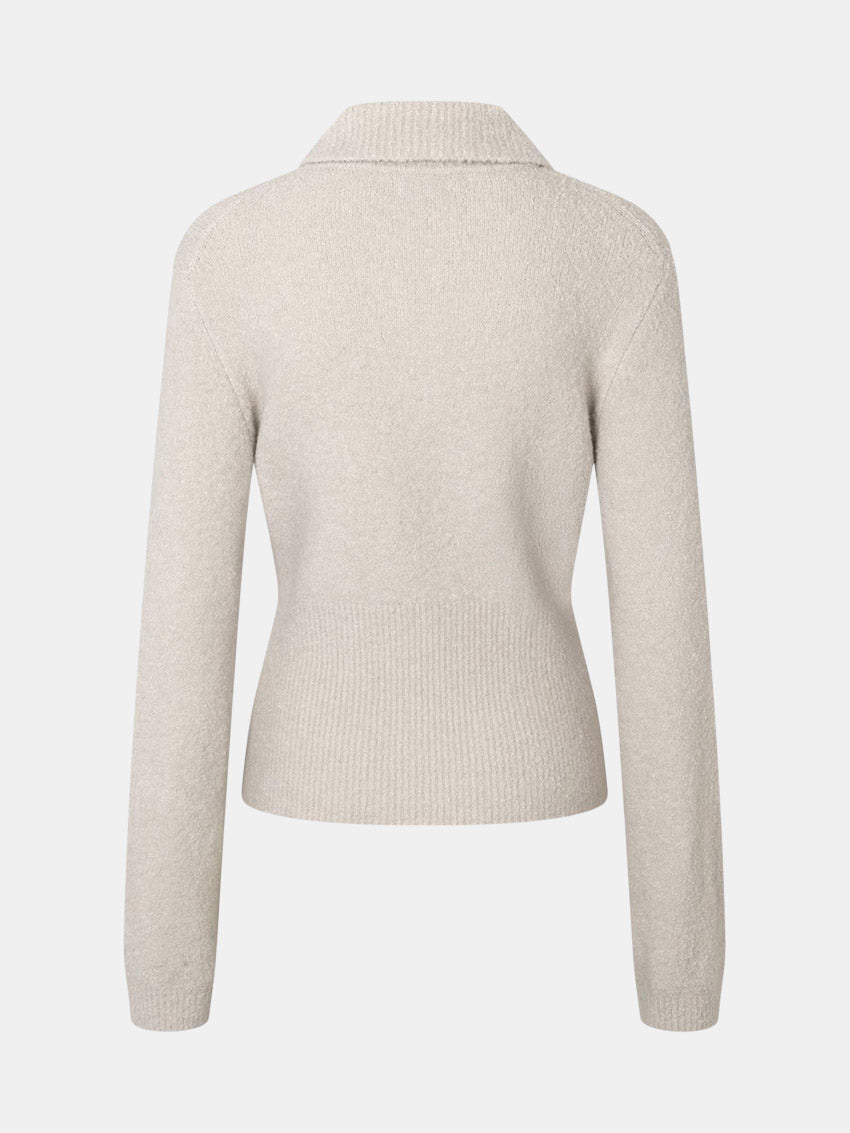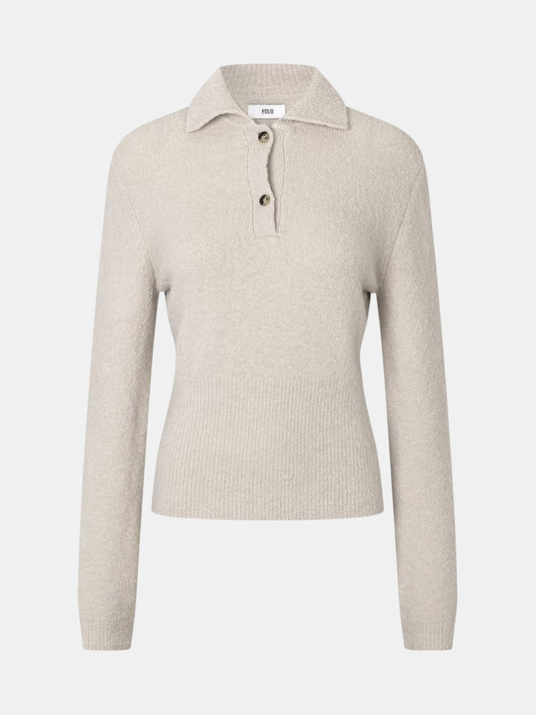 Blød polo i beige med bred tætsiddende ribkant fra Envii.