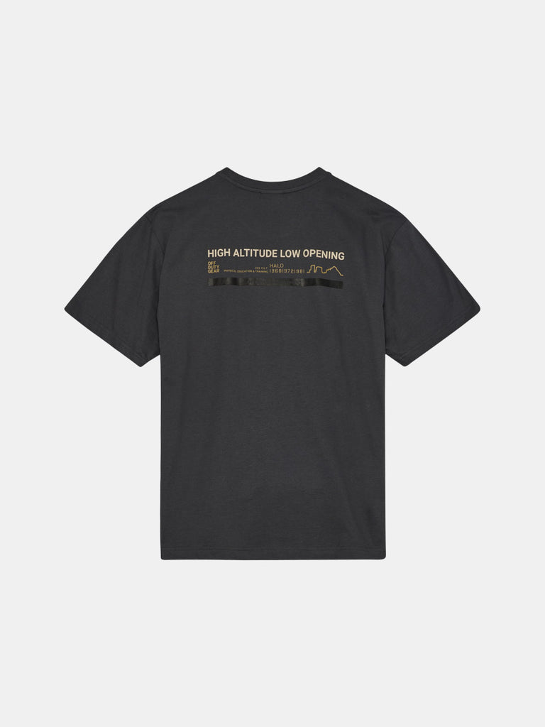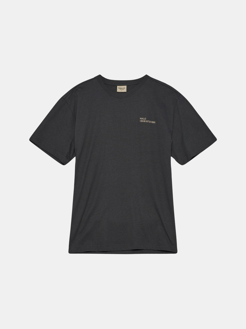 T-shirt i økologisk bomuld med logo på brystet og grafisk print på ryggen fra HALO.