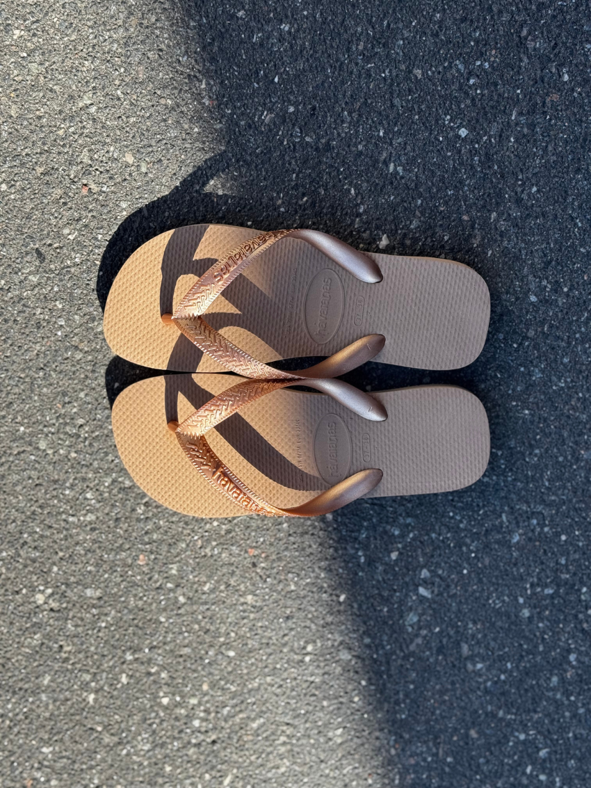 Havaianas Top Tiras Slippers lader din personlige stil stå i centrum. Med en blød farvepalette og elegante, metalliske stropper tilfører den et strejf af charme til enhver sommerstil. Det lette og behagelige design gør dem perfekte til hele sæsonen – en sand favorit, du vil række ud efter igen og igen.