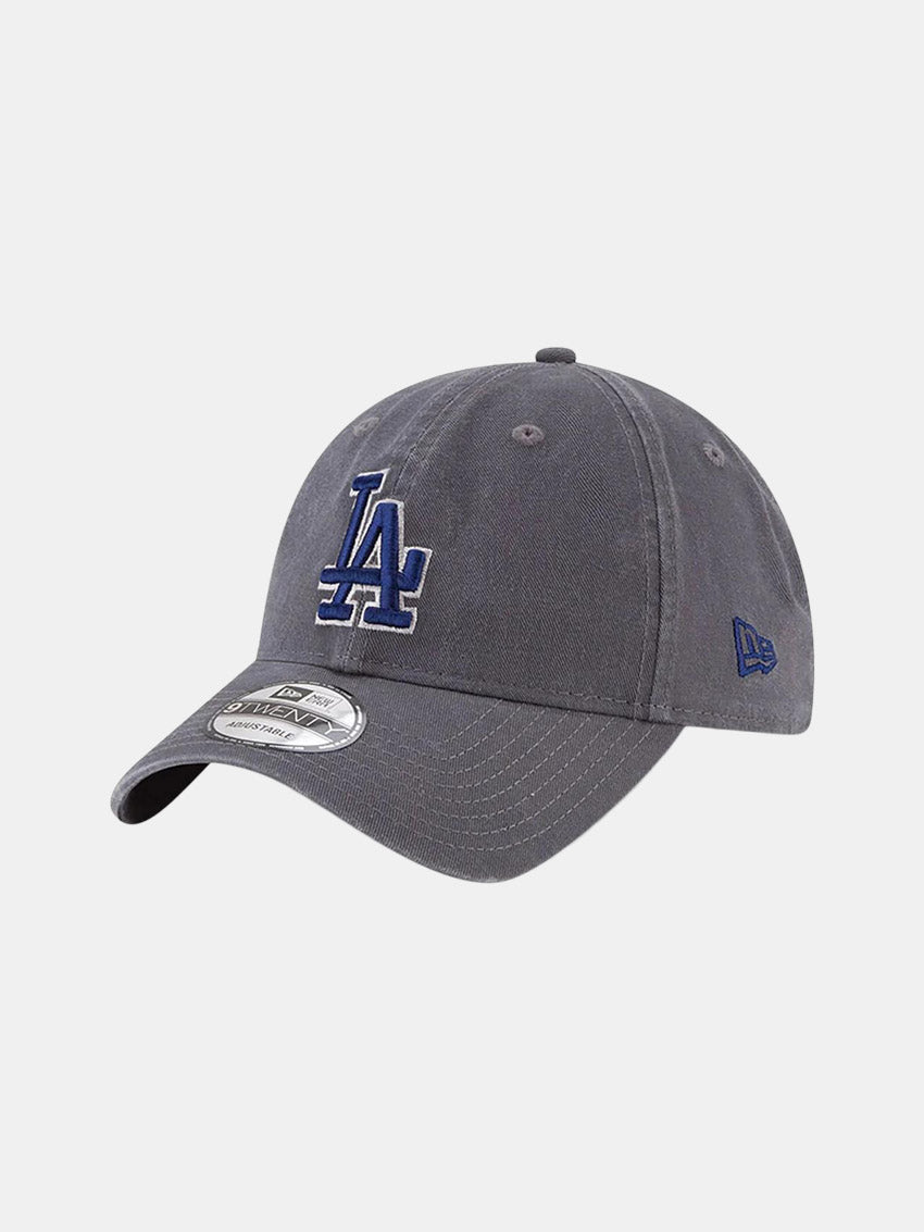 Mørkegrå cap i bomuld med blåt LA logo fra New Era.
