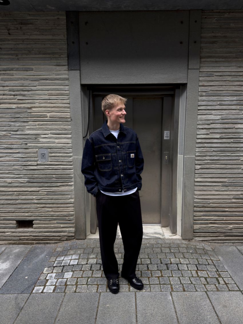 Jakke fra Carhartt fremstillet af kraftig, uforet bomuldsdenim, der giver et råt og holdbart udtryk. Jakken har to brystlommer og to sidelommer og er forstærket med bartack-syninger og metalnitter ved udsatte punkter for ekstra slidstyrke. Den justerbare pasform sikres med knapstrop bagpå og manchetter med knaplukning. Et vævet Square Label fuldender designet.