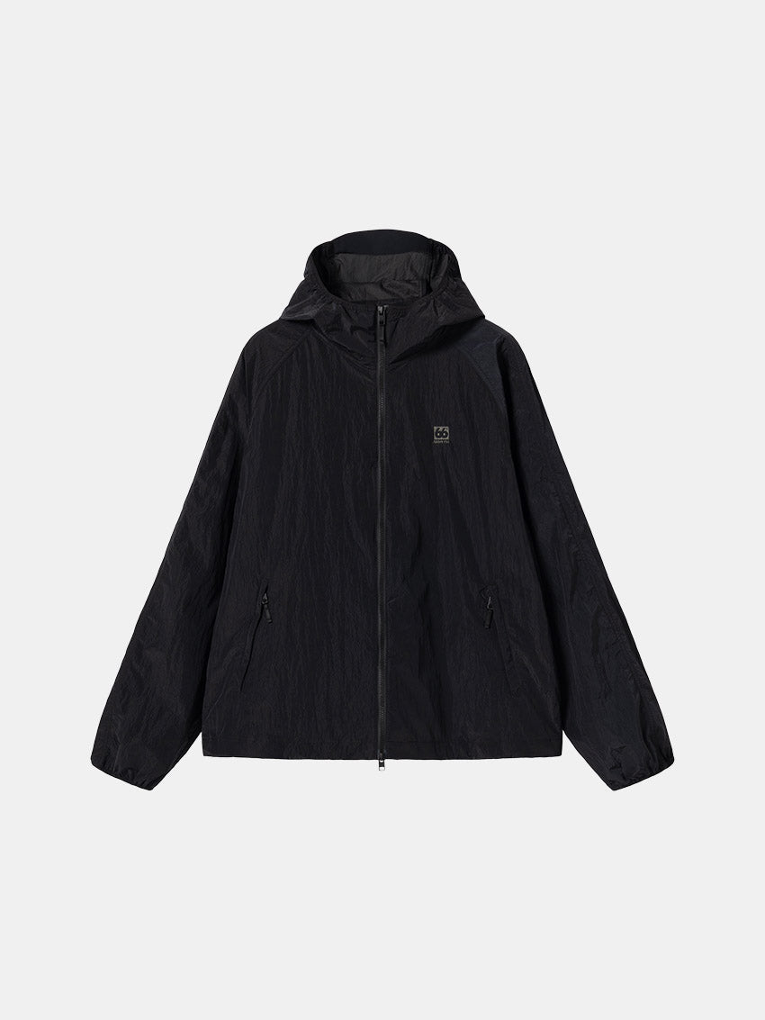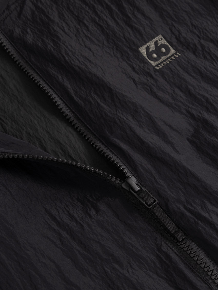 Letvægts windbreaker fra 66°North i vindafvisende materiale med beskyttende hætte og lynlåslukning foran. Jakken har sikre lommer og en struktureret pasform, der giver bevægelsesfrihed og nem lag-på-lag styling.