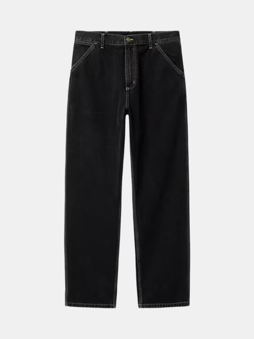 Simple Pant fra Carhartt har en work-inspireret silhuet og en afslappet, straight-leg pasform. Bukserne er lavet i 11,25 oz Norco-denim, et tungt bomuldstwillstof. Bukserne er stone-washed for et let brugt look og har forstærkede syninger på udsatte steder øger buksernes holdbarhed.