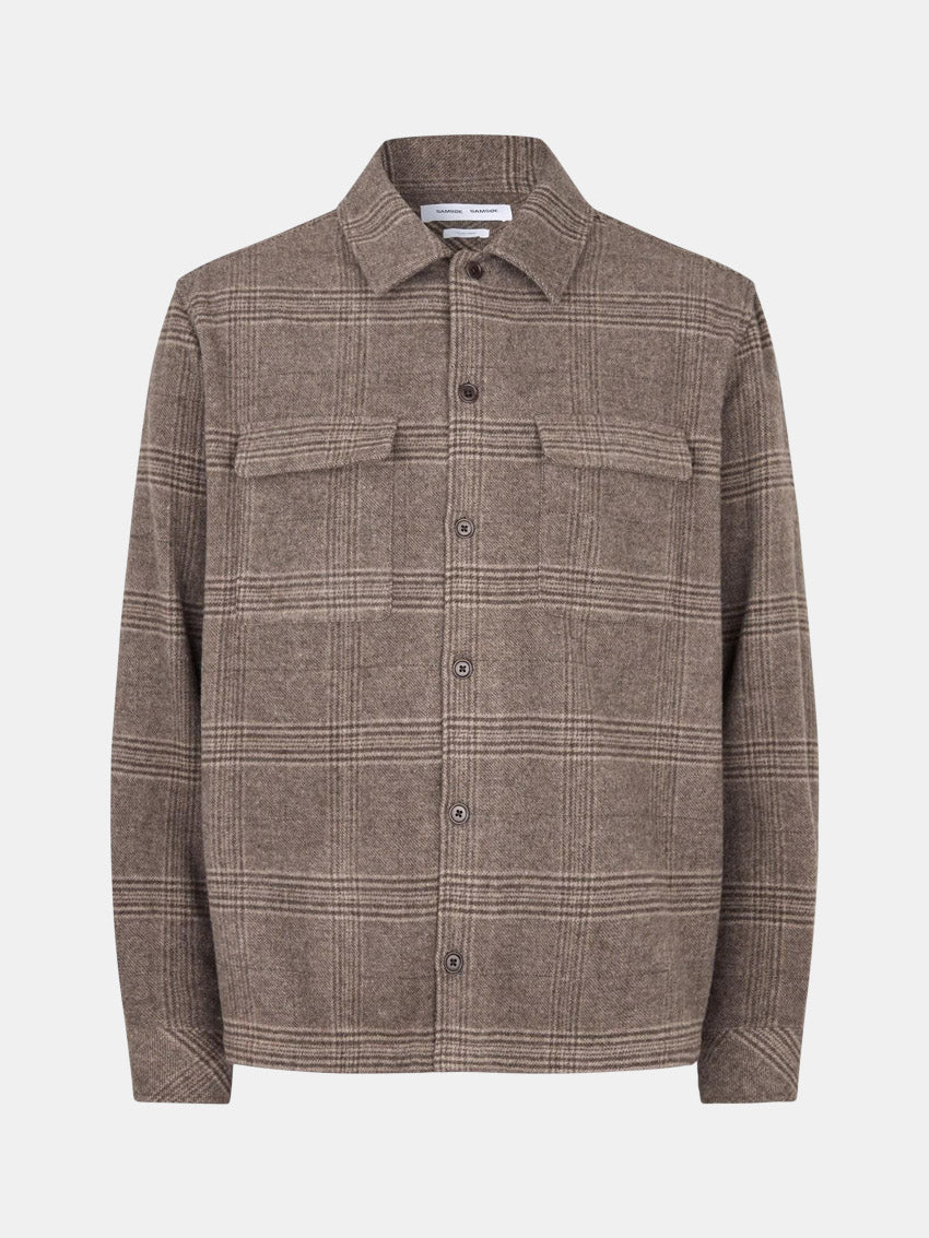 Afslappet skjortejakke i ternet vævning med knaplukning og brystlommer, lavet i en genanvendt akryl- og uldblanding fra Samsøe Samsøe.