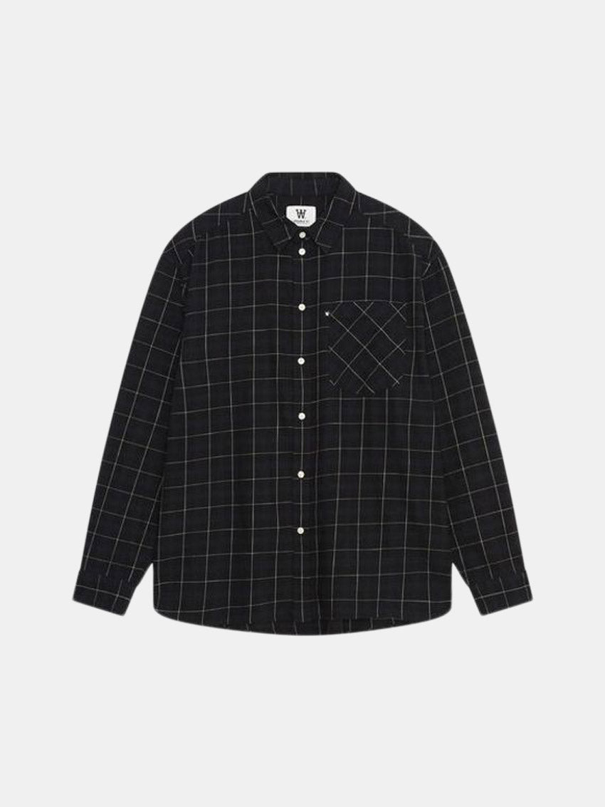 Mørkegrå skjorte med tern i økologisk bomuld fra Wood Wood.