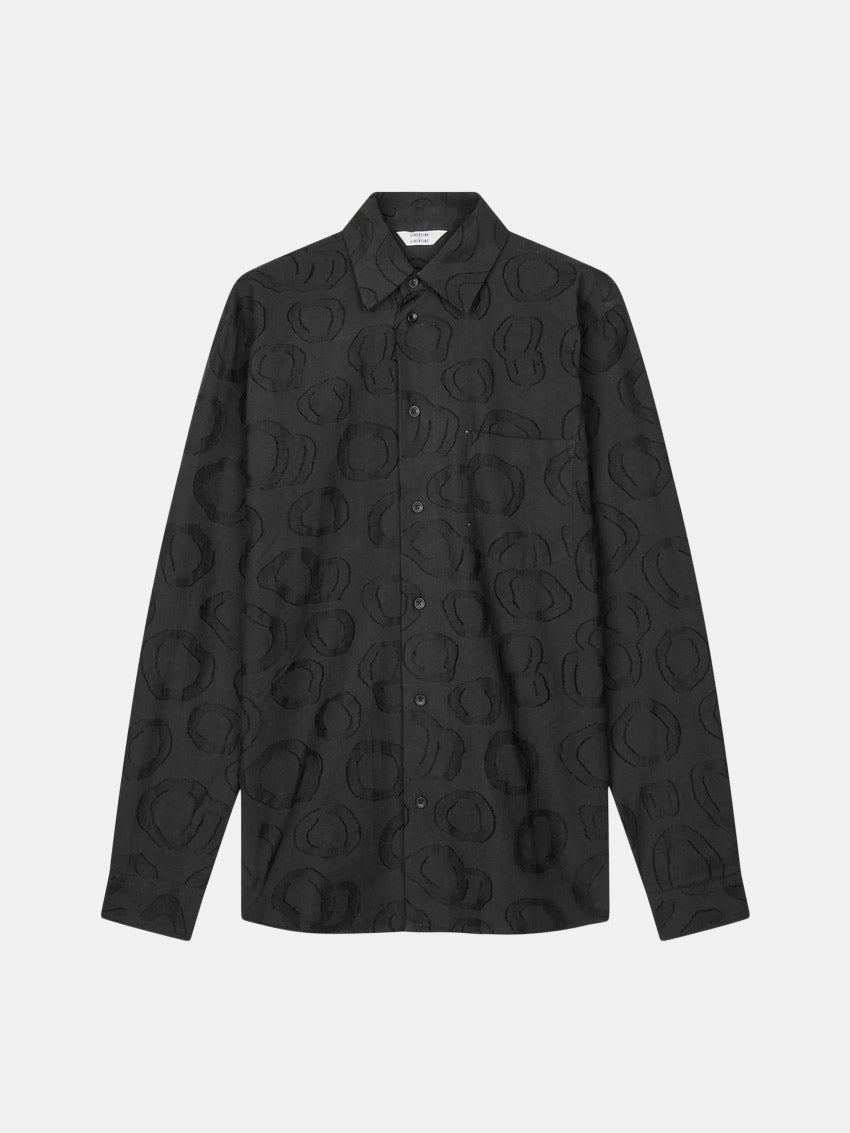Sort skjorte i jacquardvævet bomuld med en ren, afslappet pasform. Designet med sort knaplukning, sømløs stolpe og krave for et minimalistisk udtryk fra Libertine Libertine.