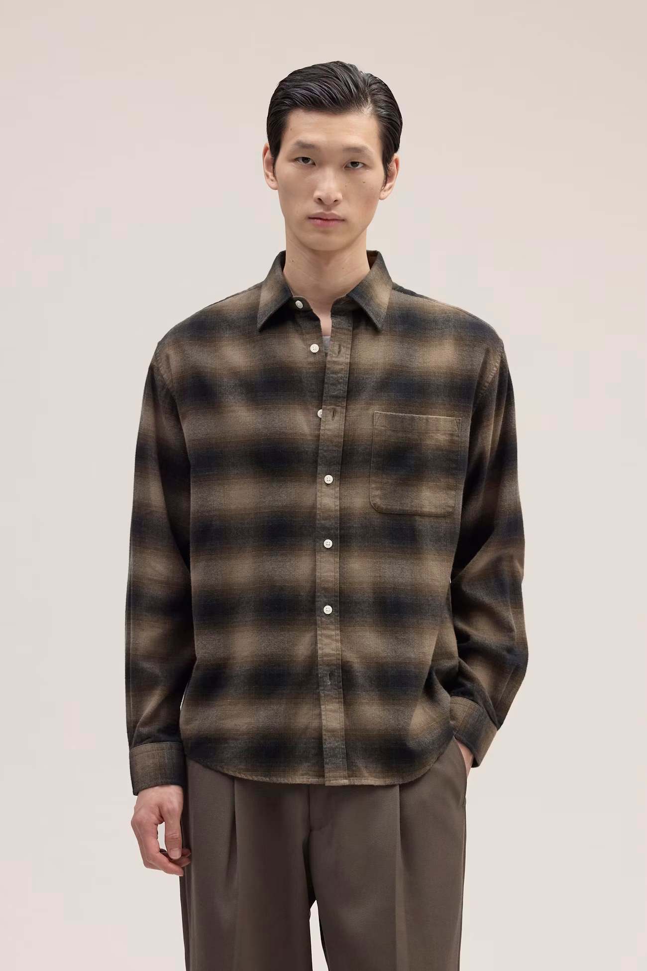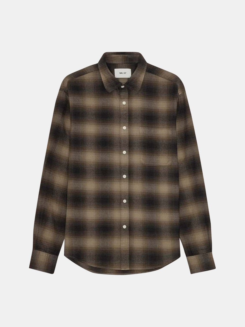 Klassisk ternet skjorte i blød bomuldsflannel med laplomme og afrundet kant – en tidløs og komfortabel favorit til sæsonen fra NN07.