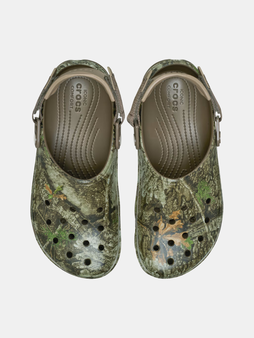 Realtree APX® All-Terrain Clog kombinerer ikonisk komfort med markant camo-stil. Den nye APX camo-print fra Realtree bruger avancerede farver, tekstur og dybde for et realistisk udtryk. Clog’en har bløde Croslite™-såler og justerbare turbo-heel stropper, hvilket giver både komfort og sikker pasform – perfekt til at gøre et stærkt stilstatement i alle miljøer.