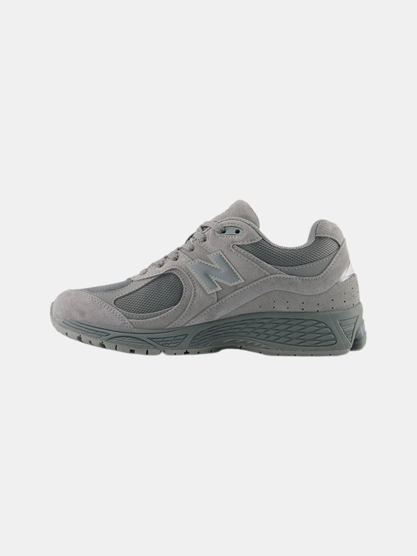 Grå sneakers fra New Balance i en kombination af mesh og imiteret ruskind. Modellen har klassiske snørebånd og er udstyret med en stødabsorberende ABZORB-mellemsål for høj komfort. Sidelogoet prydes af det ikoniske N, og designet fuldendes af den populære 2002R-silhuet.