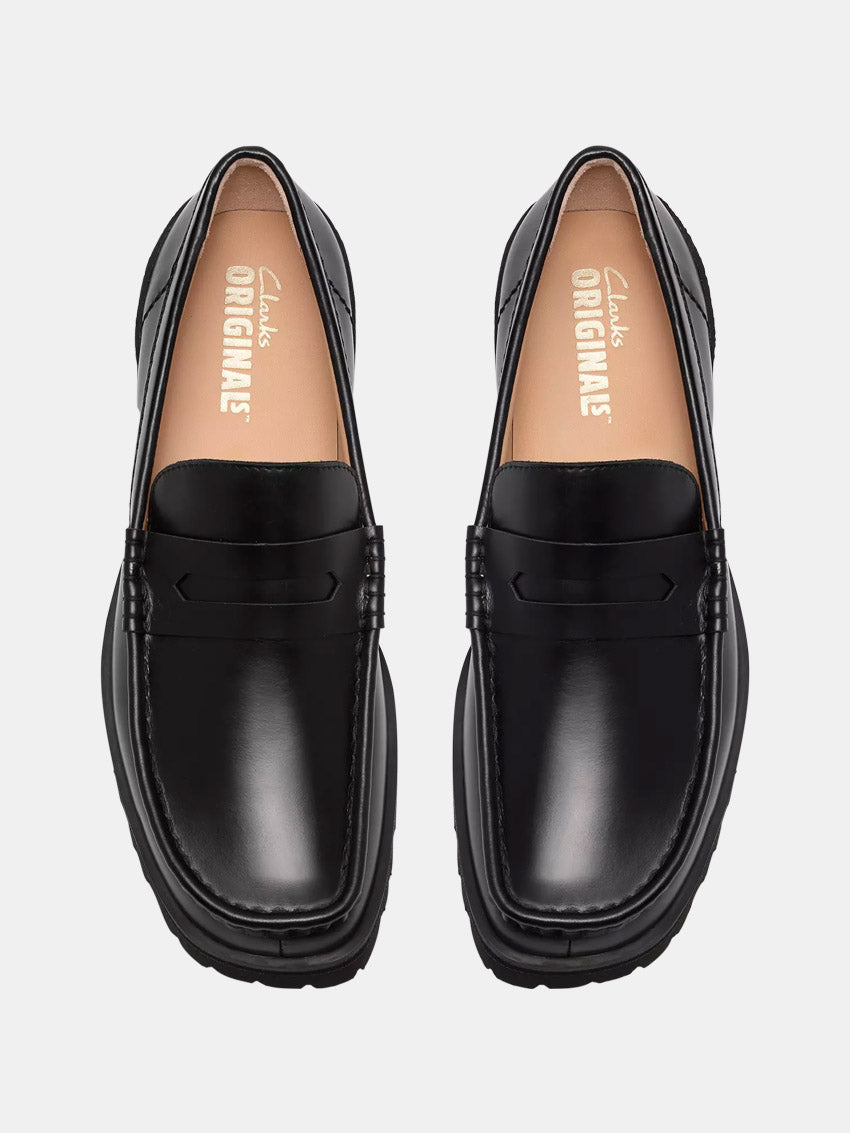 Yukoner Penny Loafers fra Clarks er en moderne fortolkning af den klassiske loafer. Loaferen bevarer den crepe-texturerede hælkappe og apron-binding på vampen, og er afsluttet med et cut-out saddle-detalje hentet fra den historiske Wallabee Loafer. En box-stitch ved kraven og apron-bindingen fuldender det håndværksmæssige udtryk.