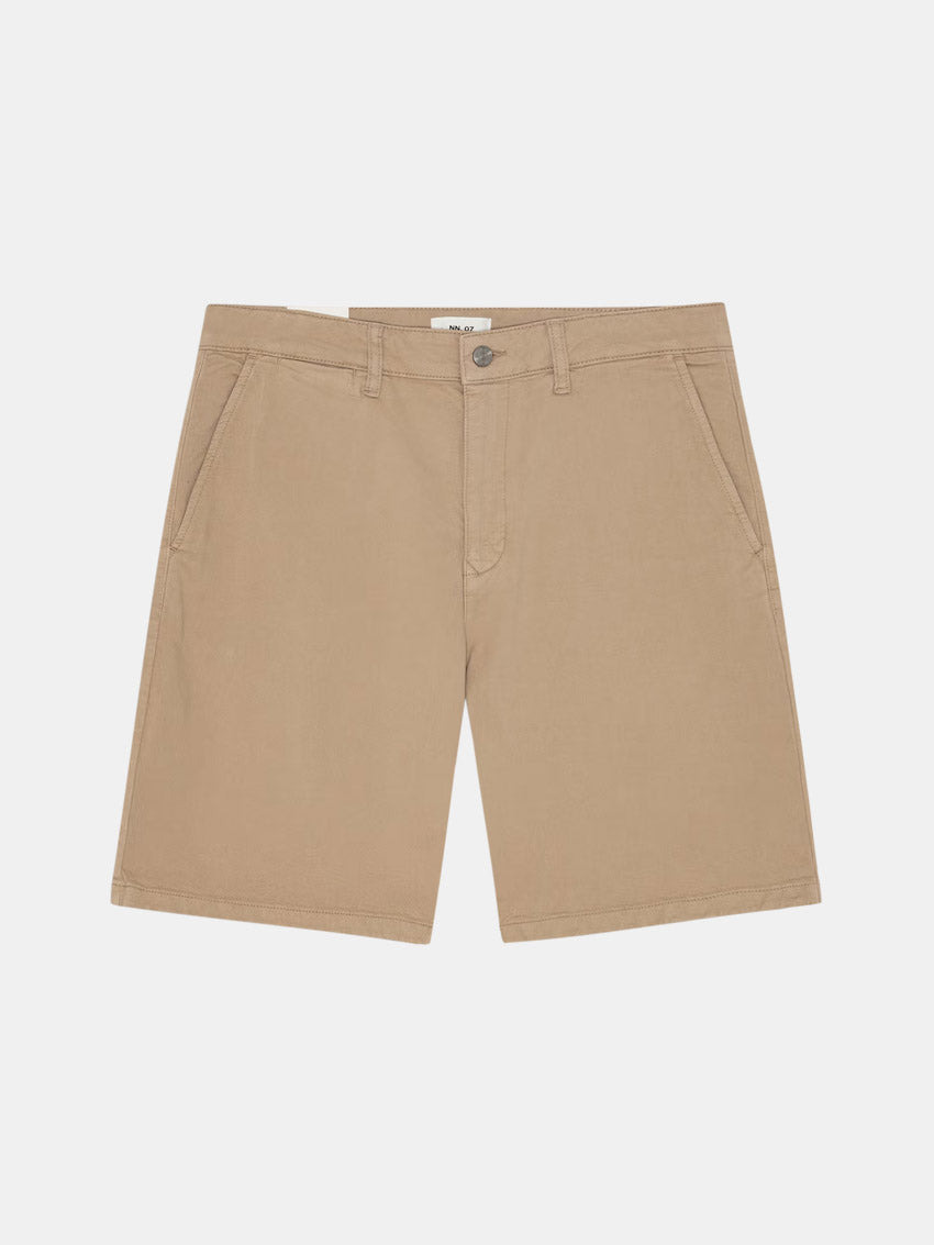Aden chino-shorts fremstillet i bomuldstwill med let stretch og en blød, ferskenagtig overflade. Designet har jeans-knaplukning, paspolerede baglommer og er garment-dyed for et levende farveudtryk.
