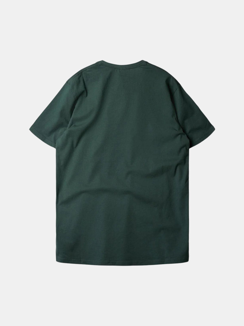 Grøn t-shirt i økologisk bomuld med et ikonisk print af den røde Puch Maxi på brystet – et tidløst symbol på frihed og menneskelig formåen fra LAKOR.