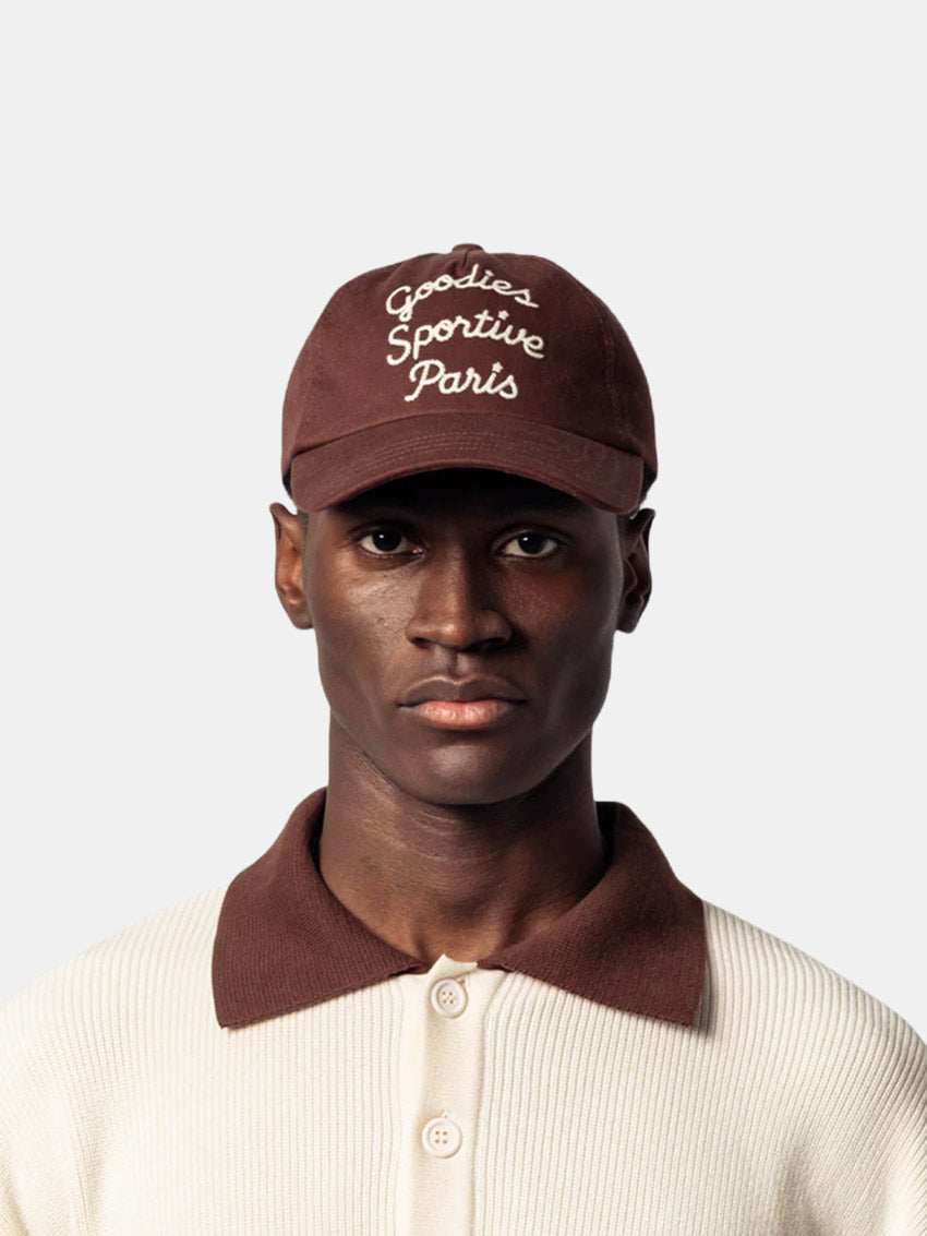 Snapback Cap i brun med broderi på fronten fra Goodies Sportive. Fremstillet i 100% bomuld.