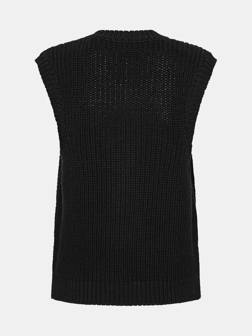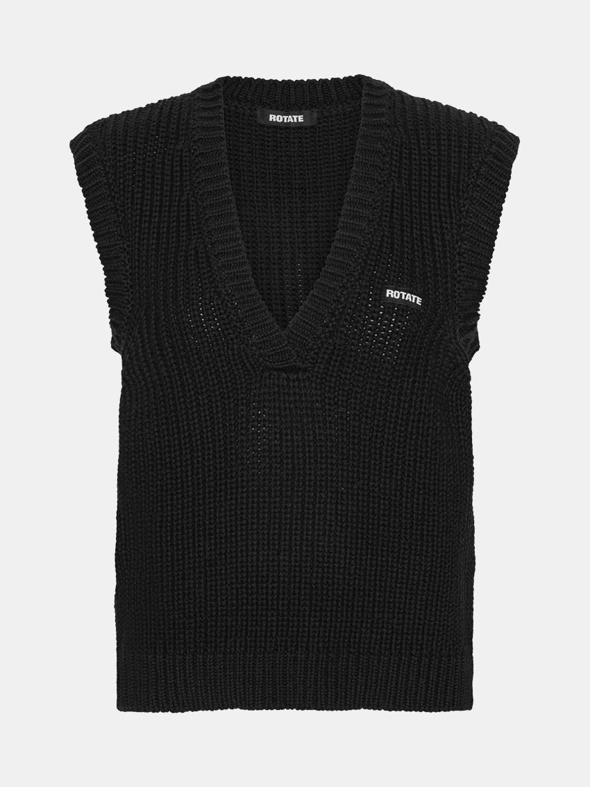 Sort strikvest i en blød uld- og bomuldsblanding med klassisk v-hals – et stilrent layering-piece til enhver garderobe fra ROTATE.