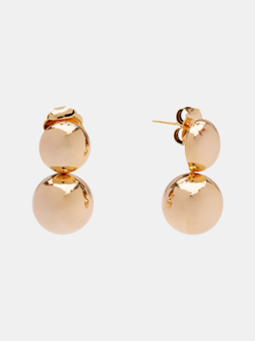 En minimalistisk ørestik designet med to kugler i enten forgyldt eller forsølvet messing. Det enkle, rene udtryk gør smykket ideelt til både hverdag og mere elegante anledninger, og den tidløse form gør det nemt at kombinere med andre smykker.