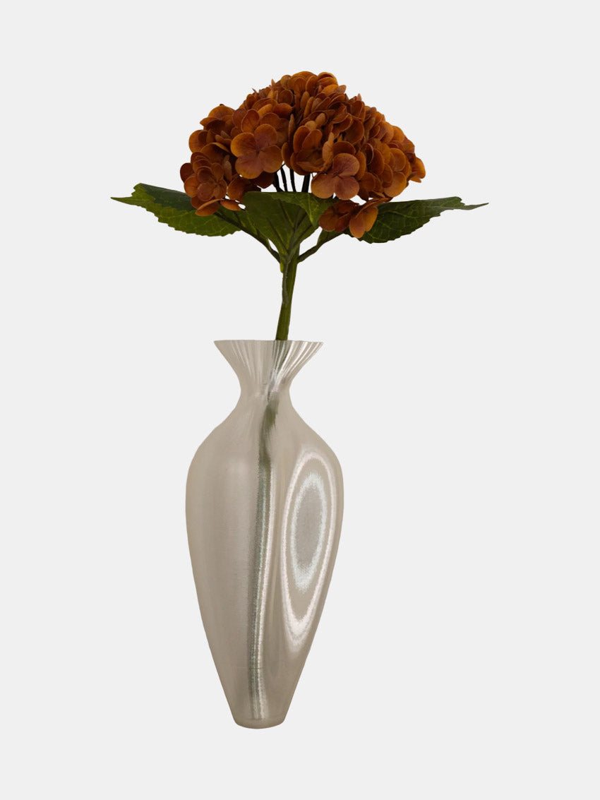Kunstig hortensia smuk udformet med fyldige blomsterhoveder i en varm orange nuance, der realistisk efterligner hortensiaens naturlige farvespil og struktur. Den kræver hverken vanding eller vedligeholdelse og tilfører alligevel rummet en vedvarende elegance og et friskt, naturinspireret udtryk. Placeret i hjemmet