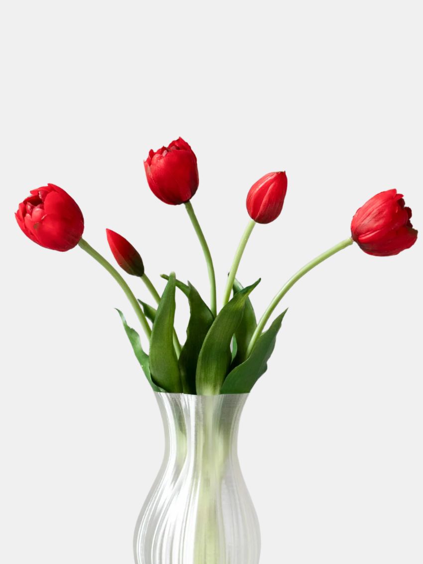 Kunstige tulipaner i en smuk rød nuance, som efterligner den ægte plantes klassiske skønhed fra Bloom Objects.