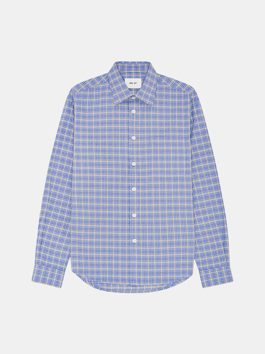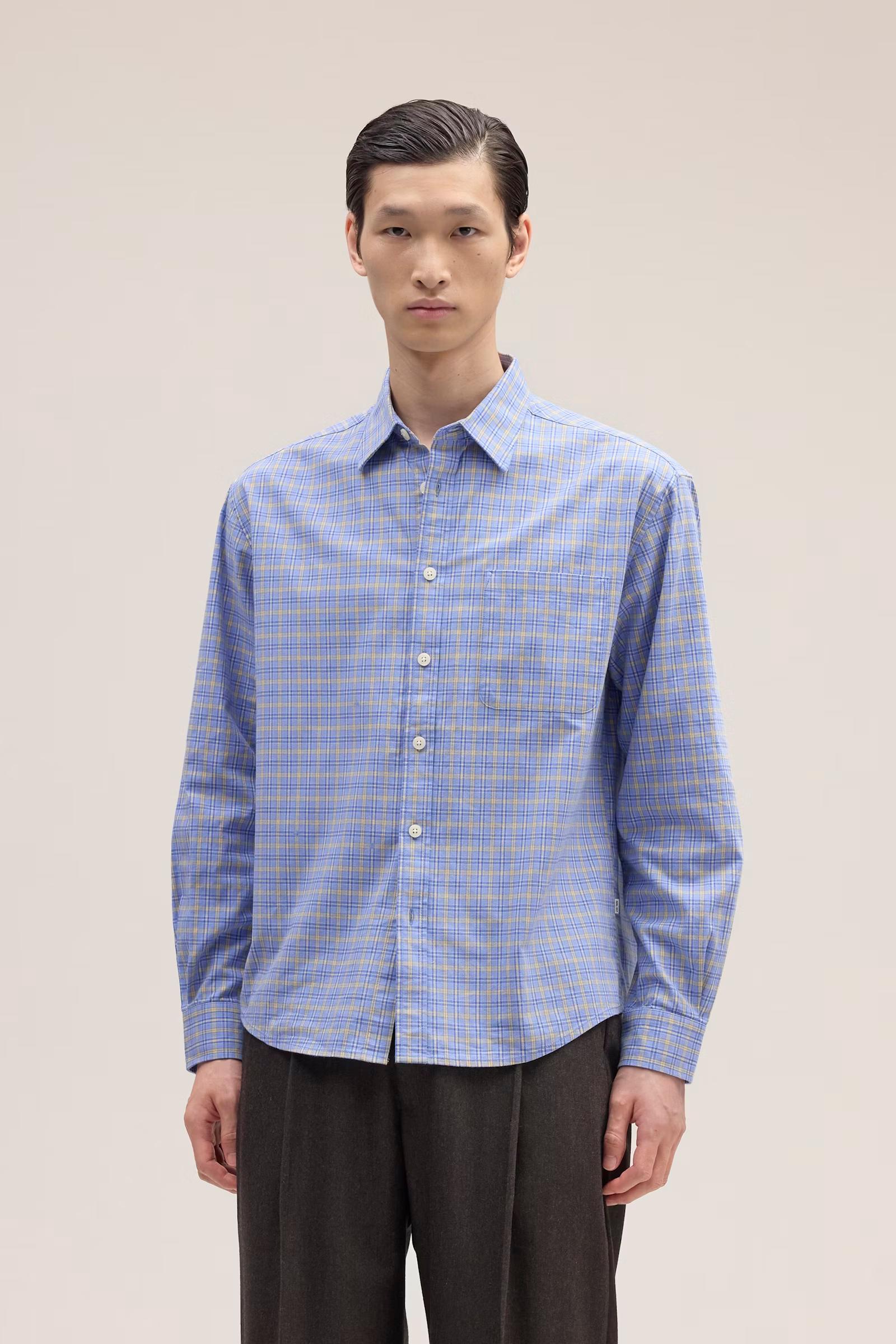 Klassisk skjorte i blød, økologisk bomuld med garnfarvet ternmønster fra NN07.
