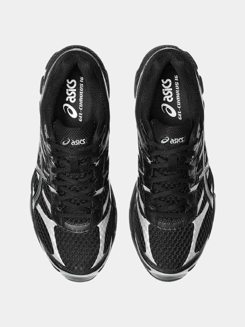 GEL-CUMULUS 16 blev oprindeligt lanceret i 2014 og er kendt for sine bløde, stødabsorberende egenskaber, særligt velegnet til længere distancer. Overdelen kombinerer blanke syntetiske læderoverlays, sømløse paneler og åbne mesh-underlag, som tilsammen skaber et teknisk udtryk, karakteristisk for 2010’ernes performance-løbesko.