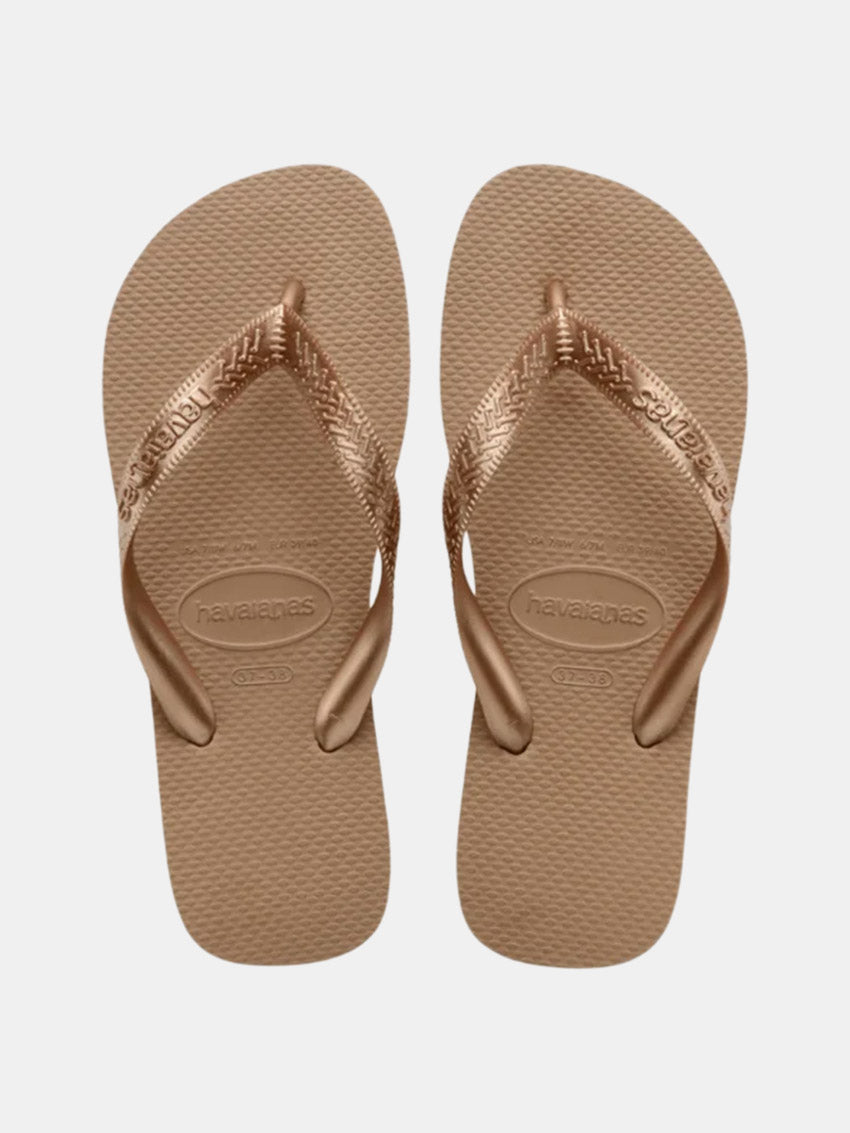 Havaianas Top Tiras Slippers lader din personlige stil stå i centrum. Med en blød farvepalette og elegante, metalliske stropper tilfører den et strejf af charme til enhver sommerstil. Det lette og behagelige design gør dem perfekte til hele sæsonen – en sand favorit, du vil række ud efter igen og igen.