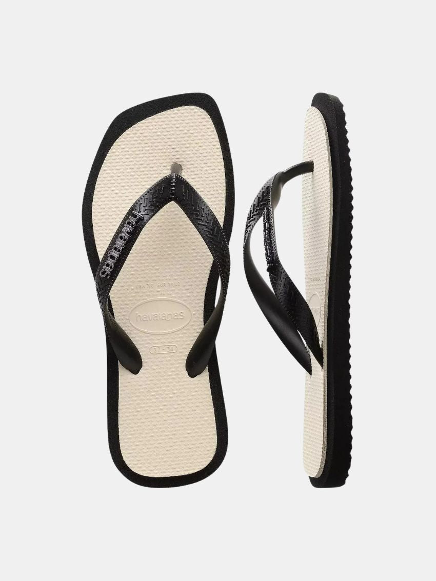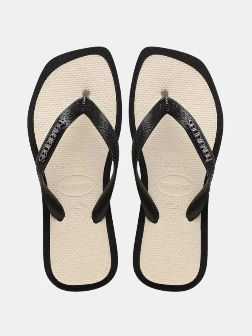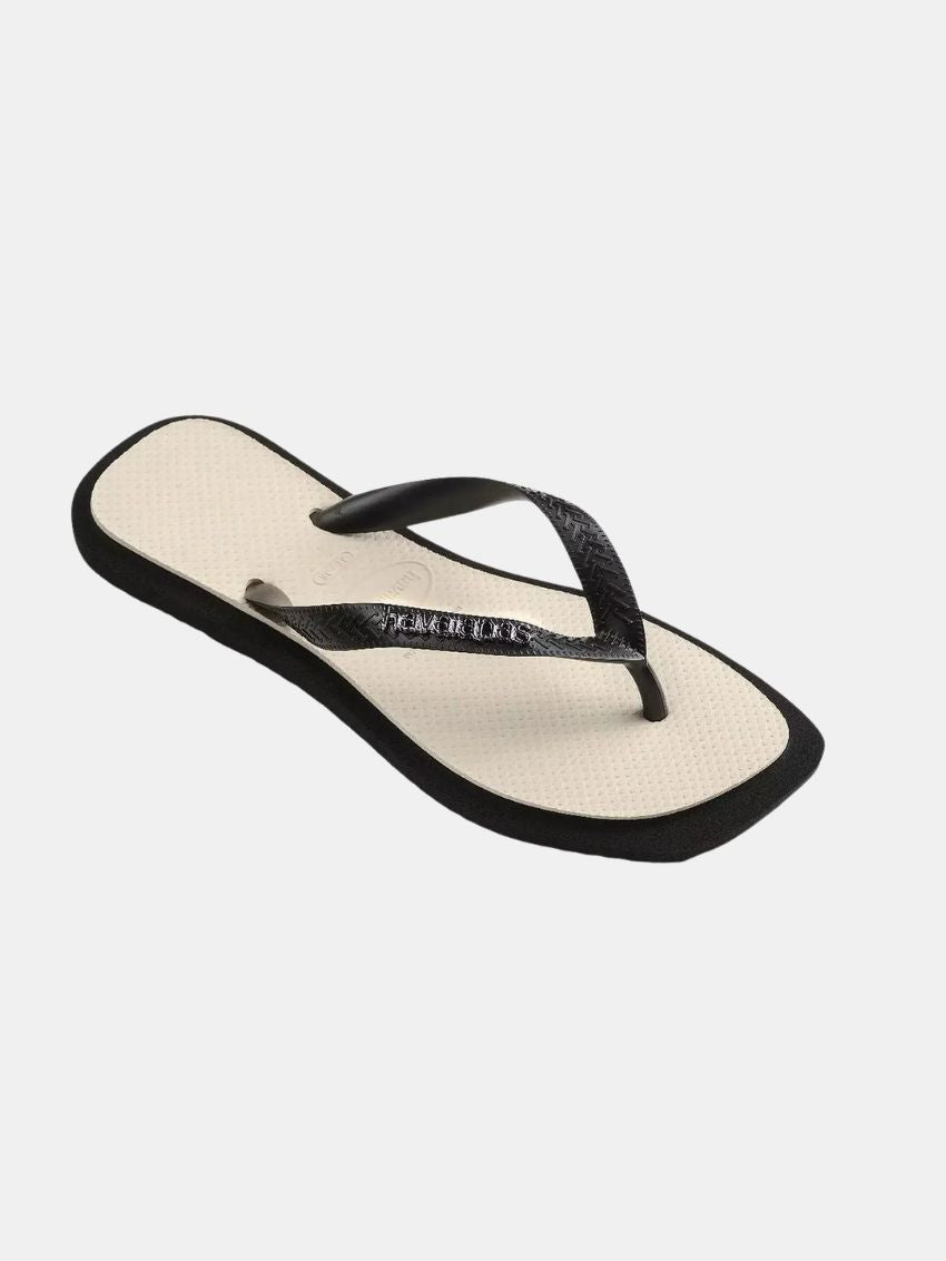 Havainas Top Square Fusion Slippers har et tidløst og minimalistisk design med en lys sål og sorte remme. De er fremstillet i et let og fleksibelt materiale, der sikrer en komfortabel pasform og gør dem ideelle til hverdagsbrug.