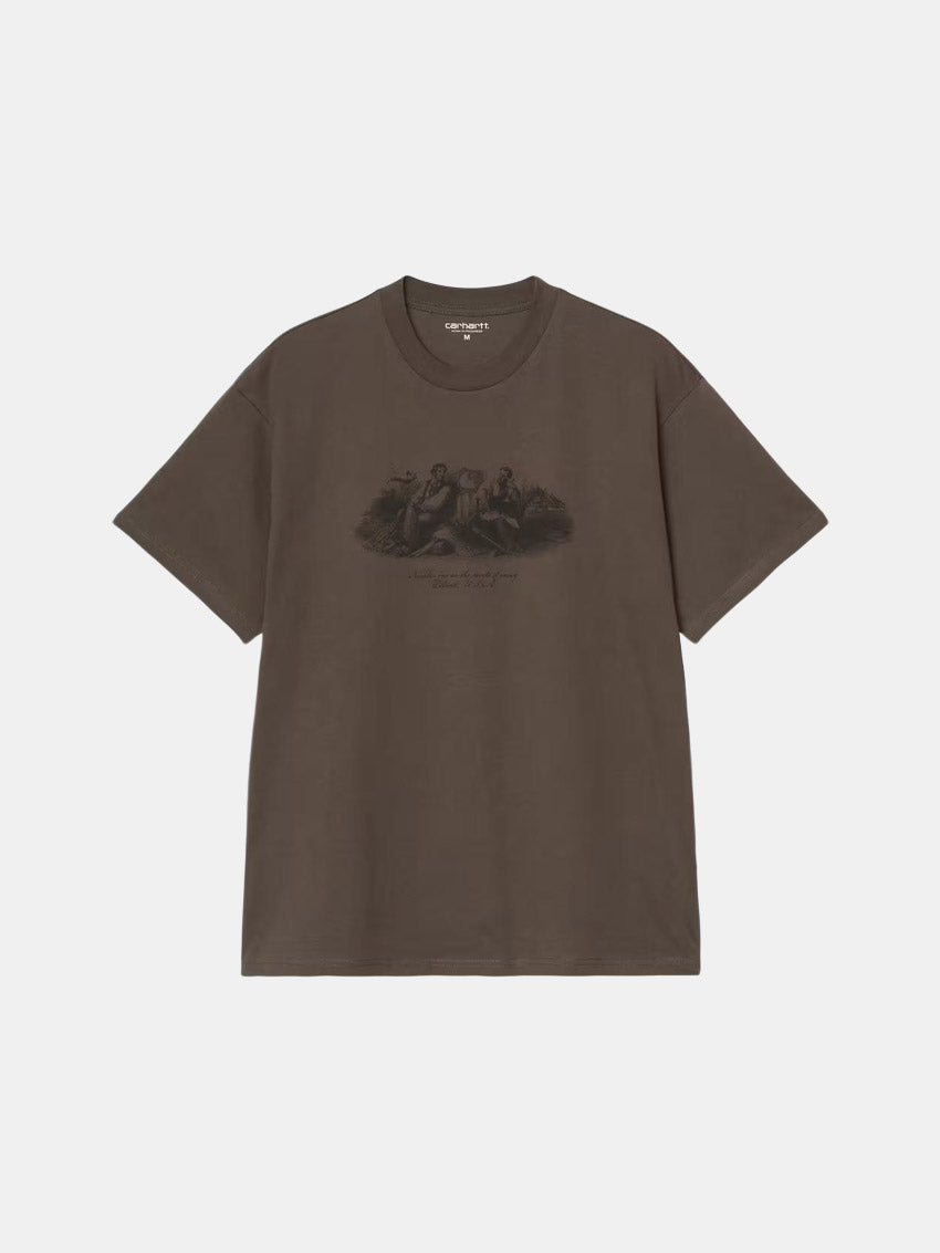 Brun t-shirt i økologisk bomuld med print foran fra Carhartt WIP.