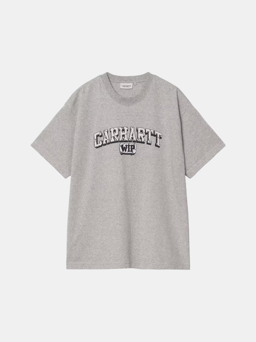 Grå t-shirt i økologisk bomuld med cool logo-print over brystet fra Carhartt WIP.