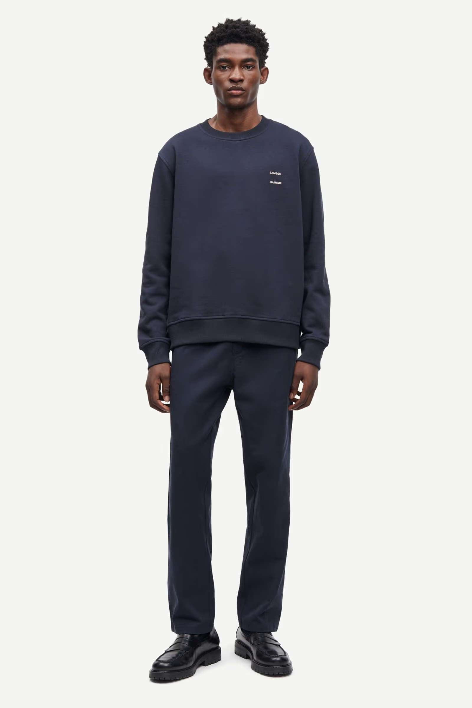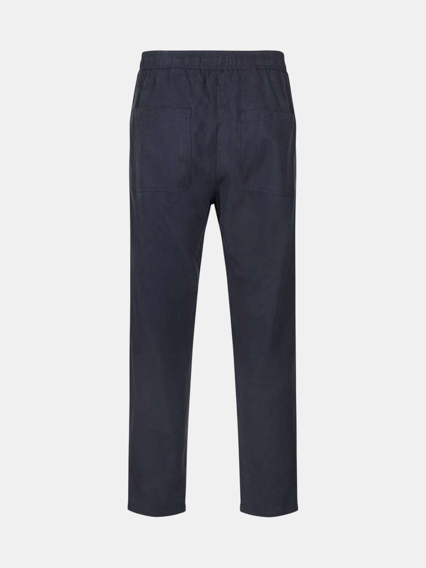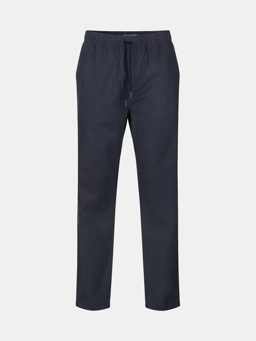 Lette, komfortable bukser i mørkeblå med elastisk talje og lige ben. Fremstillet i en blød blanding af TENCEL™ Lyocell og økologisk bomuld fra Samsøe Samsøe.
