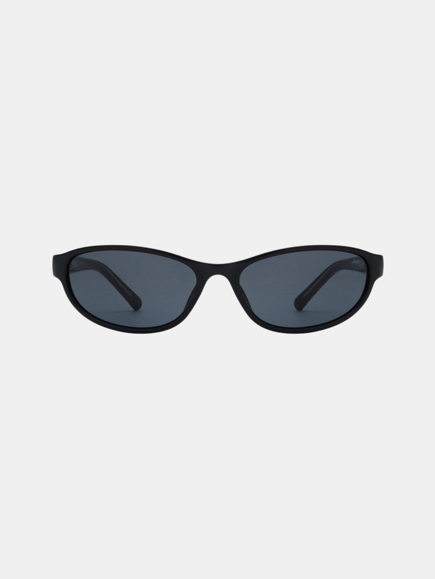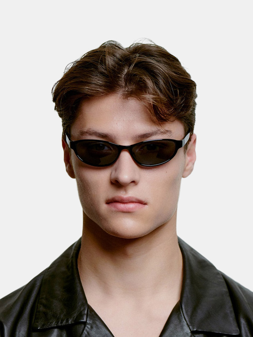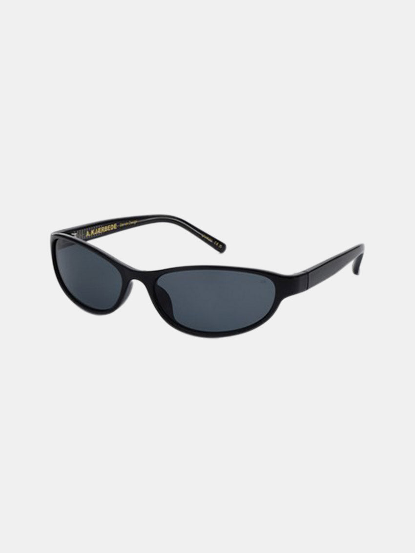 Alexa Black er en smal cat-eye-solbrille med sort stel og sorte glas, som har et futuristisk og stramt udtryk fra A. Kjærbede. De skarpe former og elegante linjer skaber et stilbevidst statement, perfekt til at tilføje kant og karakter til hverdagslooket.