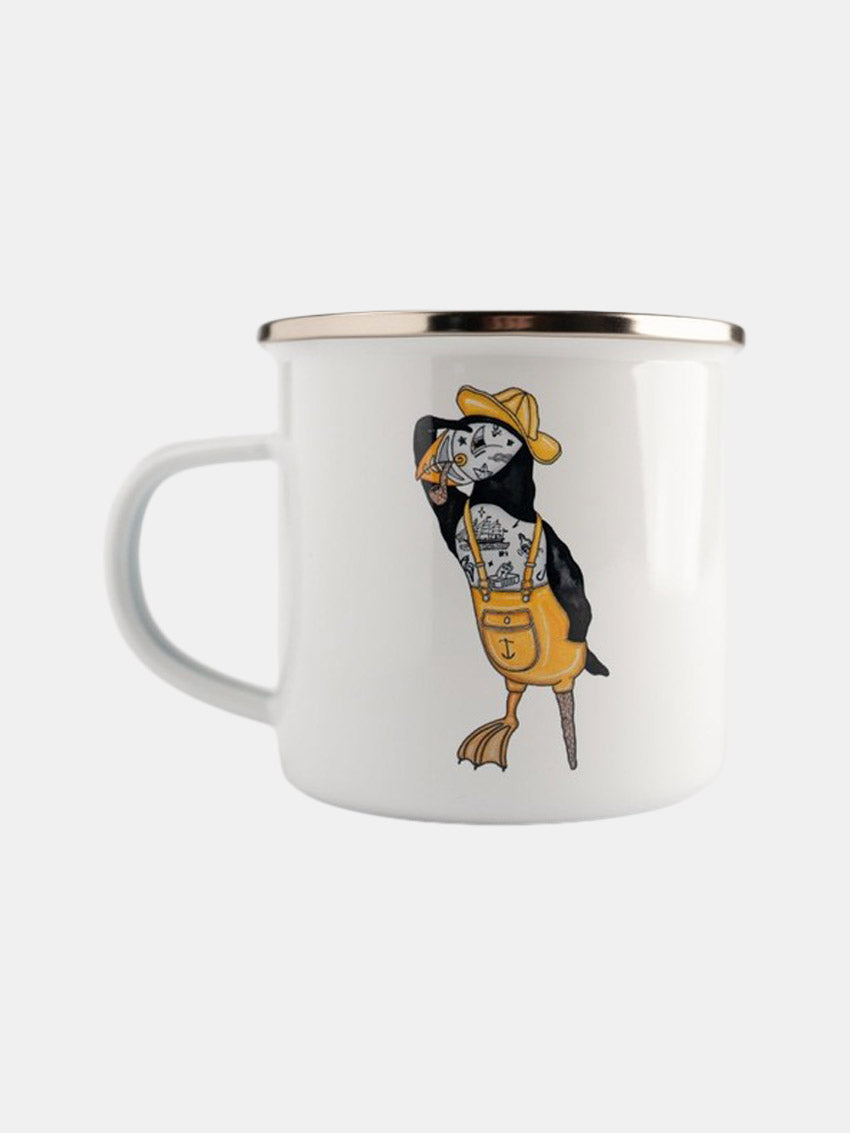 Hvid kop med print af en søpapegøje, som ryger pibe fra LAKOR.