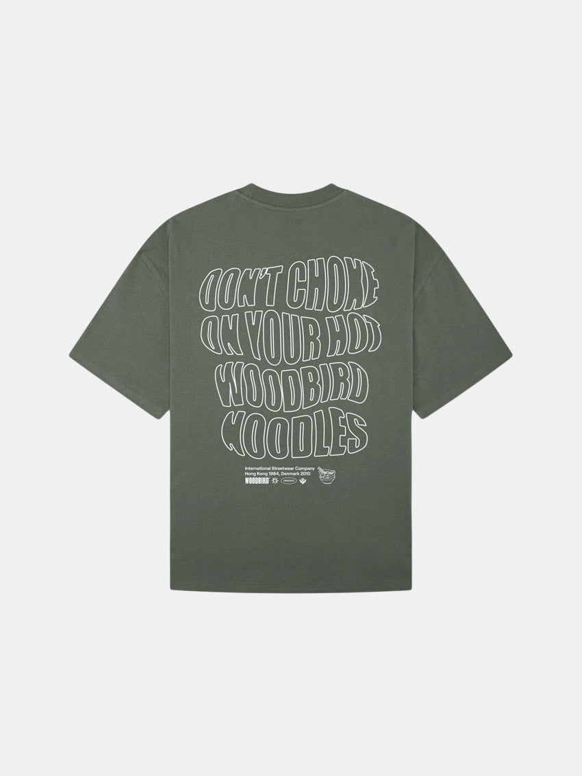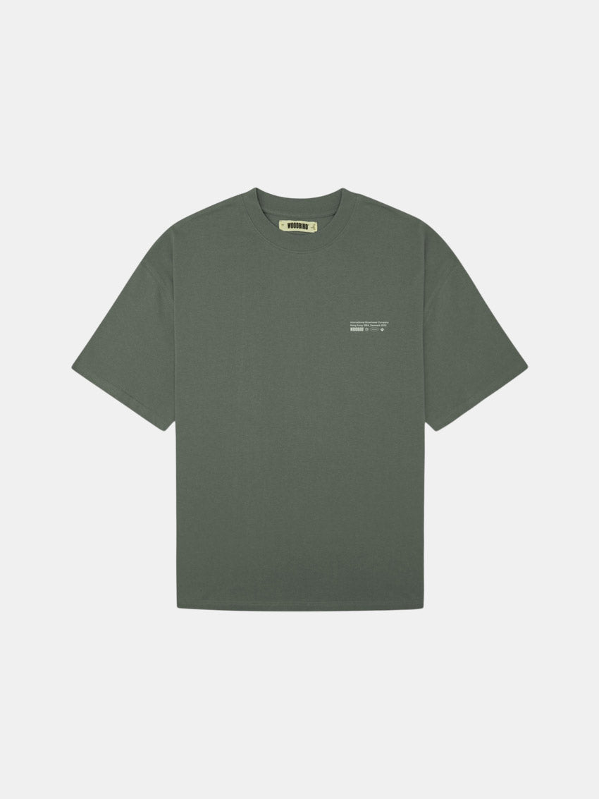 Grå/grøn t-shirt i økologisk bomuld med print på ryggen fra WoodBird.