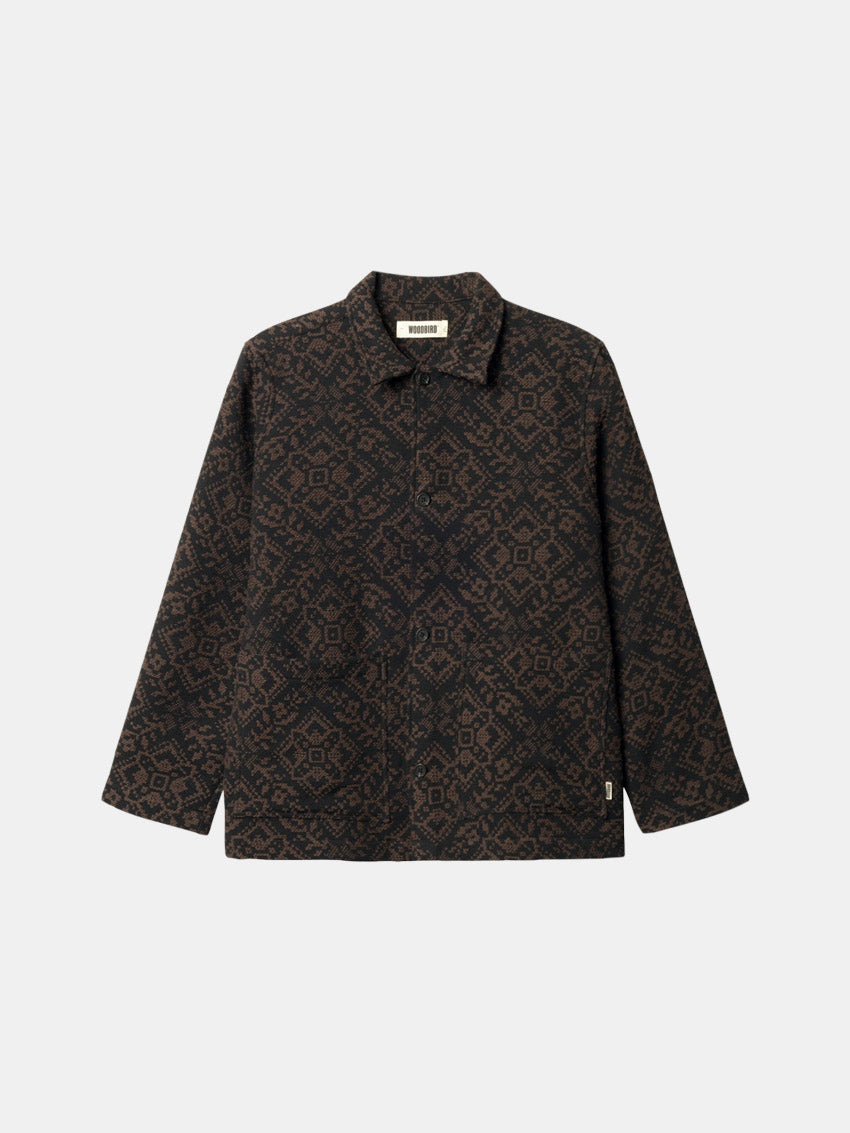 Jakke med skarpe linjer og et geometrisk mønster over hele overfladen. Understated i sit udtryk, men med et moderne og markant snit, der giver kant og personlighed til ethvert outfit fra WoodBird.