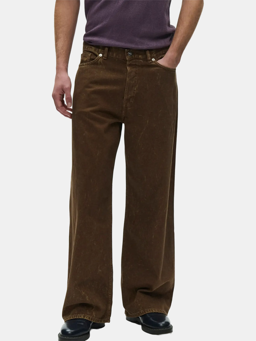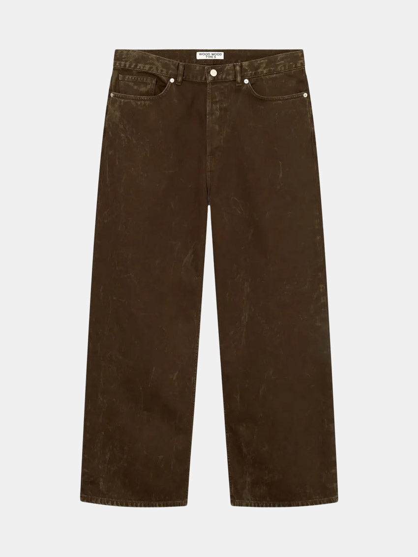 WWType 3 Jeans fra Wood Wood i farven Brown Marble er designet til en afslappet silhuet og giver en både behagelig og stilfuld pasform. Det klassiske femlommers-design sikrer praktisk funktionalitet og en tidløs æstetik. Den brede benudskæring tilføjer et moderne twist, hvilket gør jeansene til en alsidig favorit i enhver garderobe.