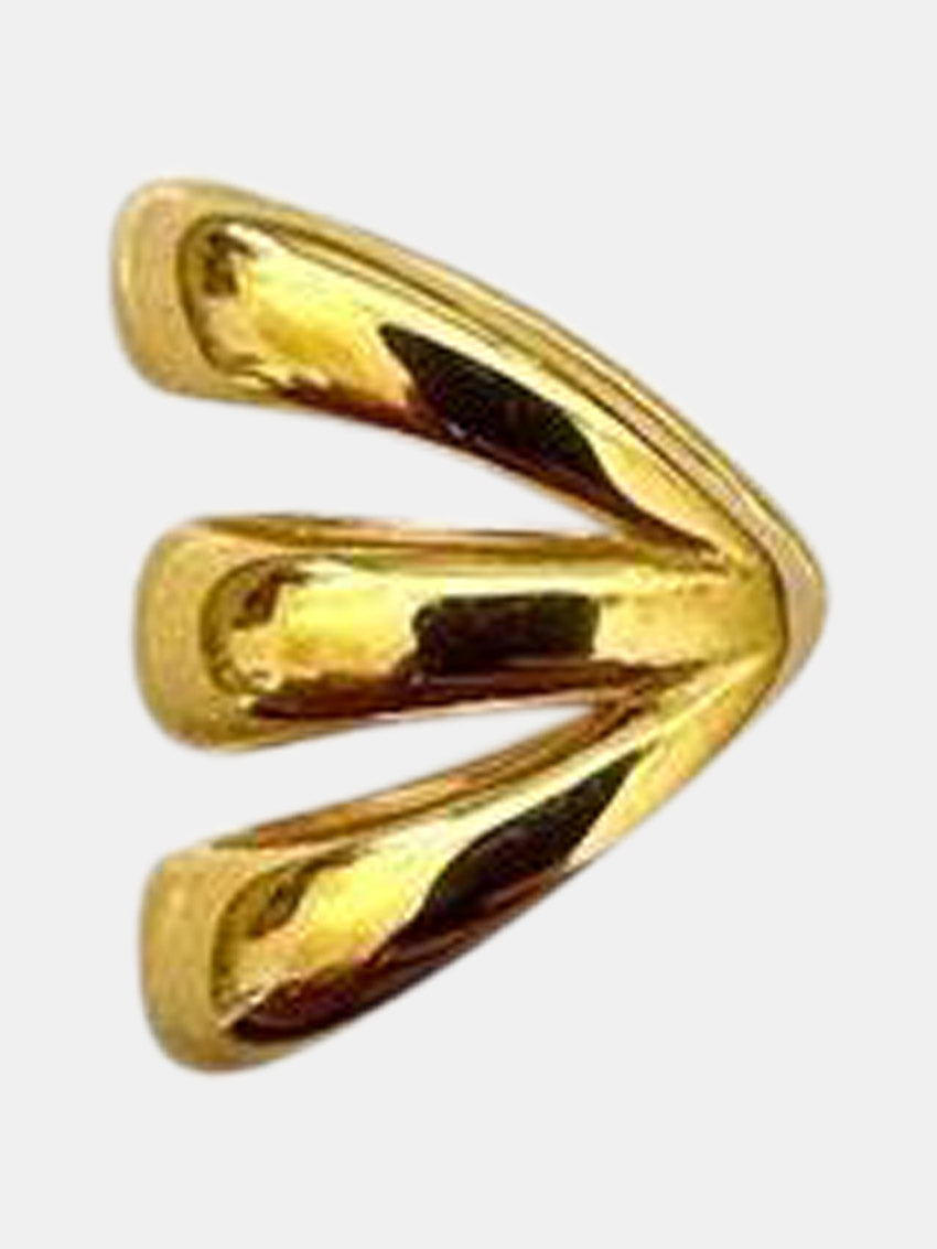 Guldbelagt ear cuff med tre buede ringe, der elegant omslutter øret og skaber et moderne, minimalistisk statement fra Pico.
