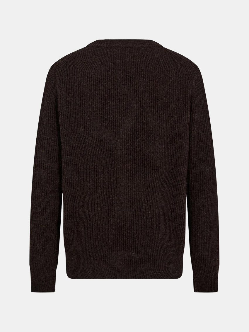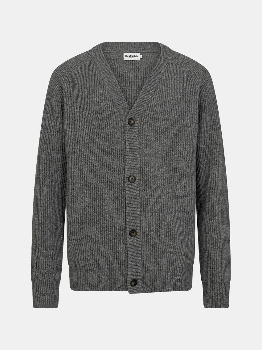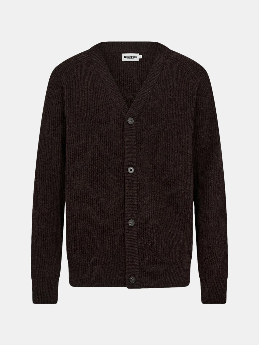 Tidløs cardigan i uld med knaplukning, ribkanter og behagelig pasform – perfekt til lag-på-lag på kølige dage fra Resteröds.