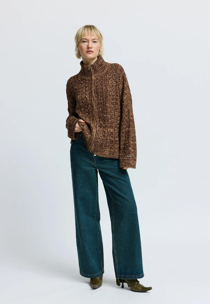 Brunmeleret cardigan i bomuld med lynlås fra Résumé.