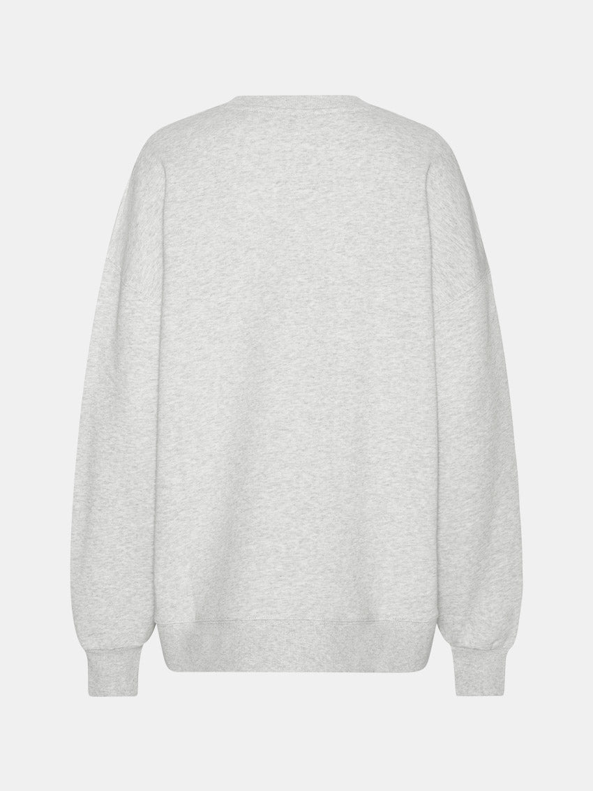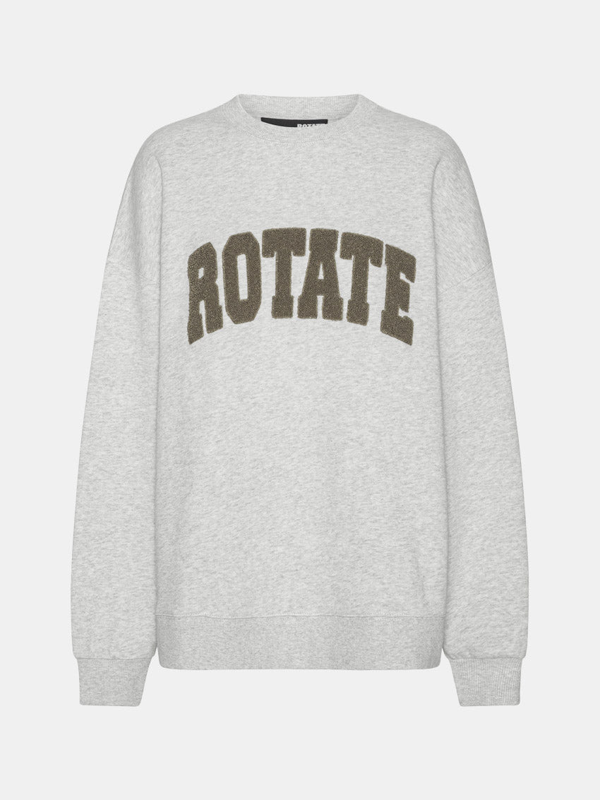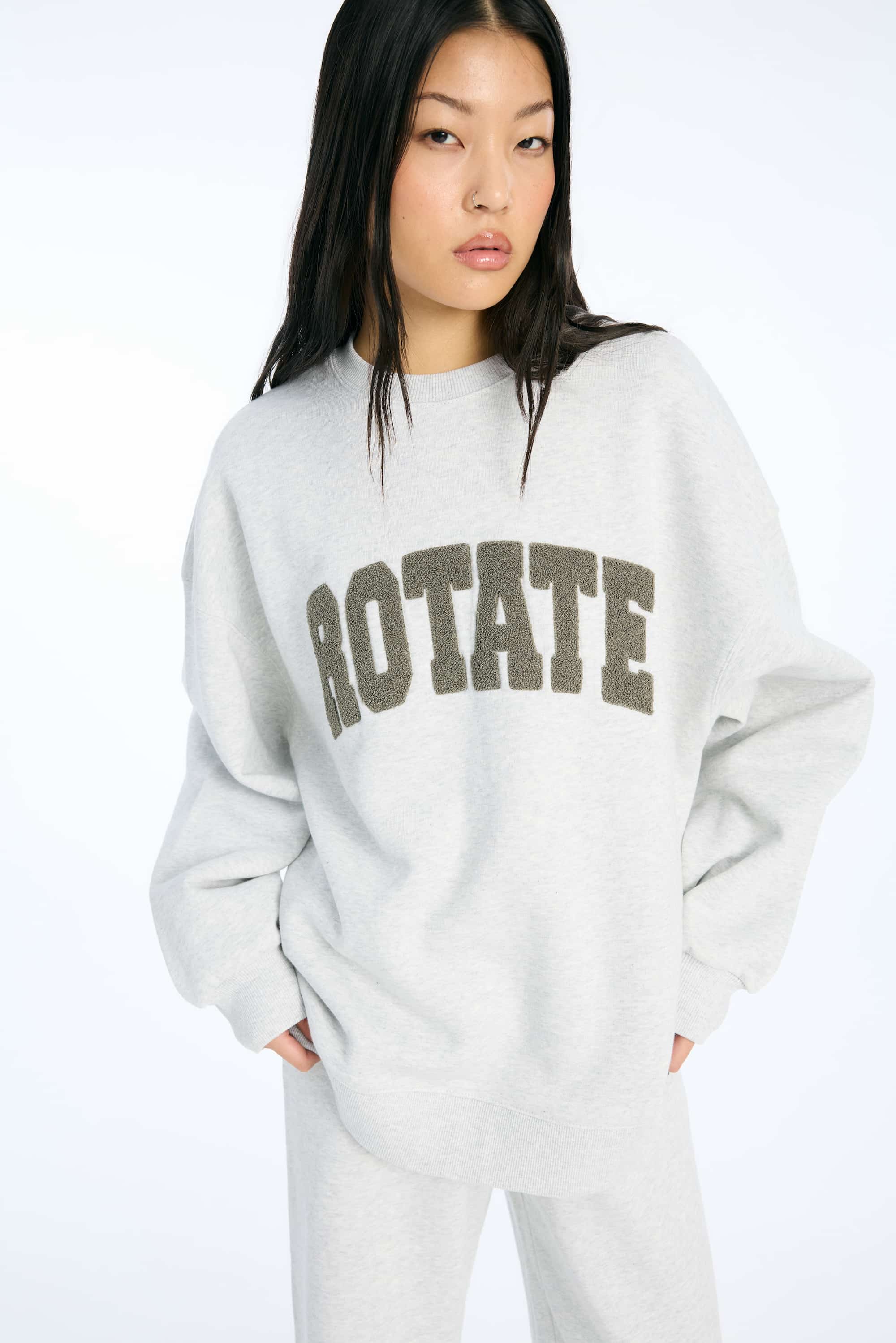 Lysegrå sweatshirt i økologisk bomuld med en oversize pasform og stort lysebrun logo foran fra ROTATE.