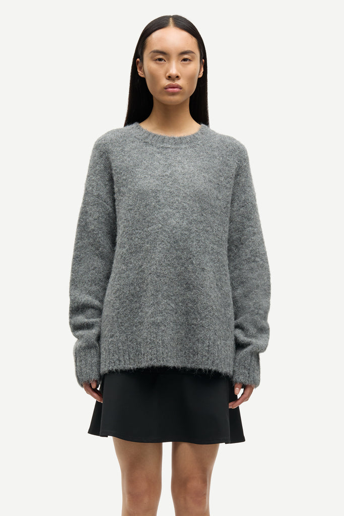 Oversize strik i grå med et børstet look fra Samsøe Samsøe.